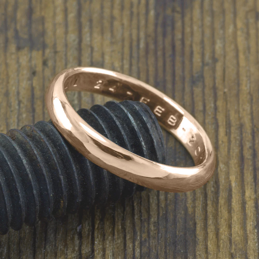 4mm Comfort Fit 14k Peach Gold Mens Wedding Band, Half Round Polished