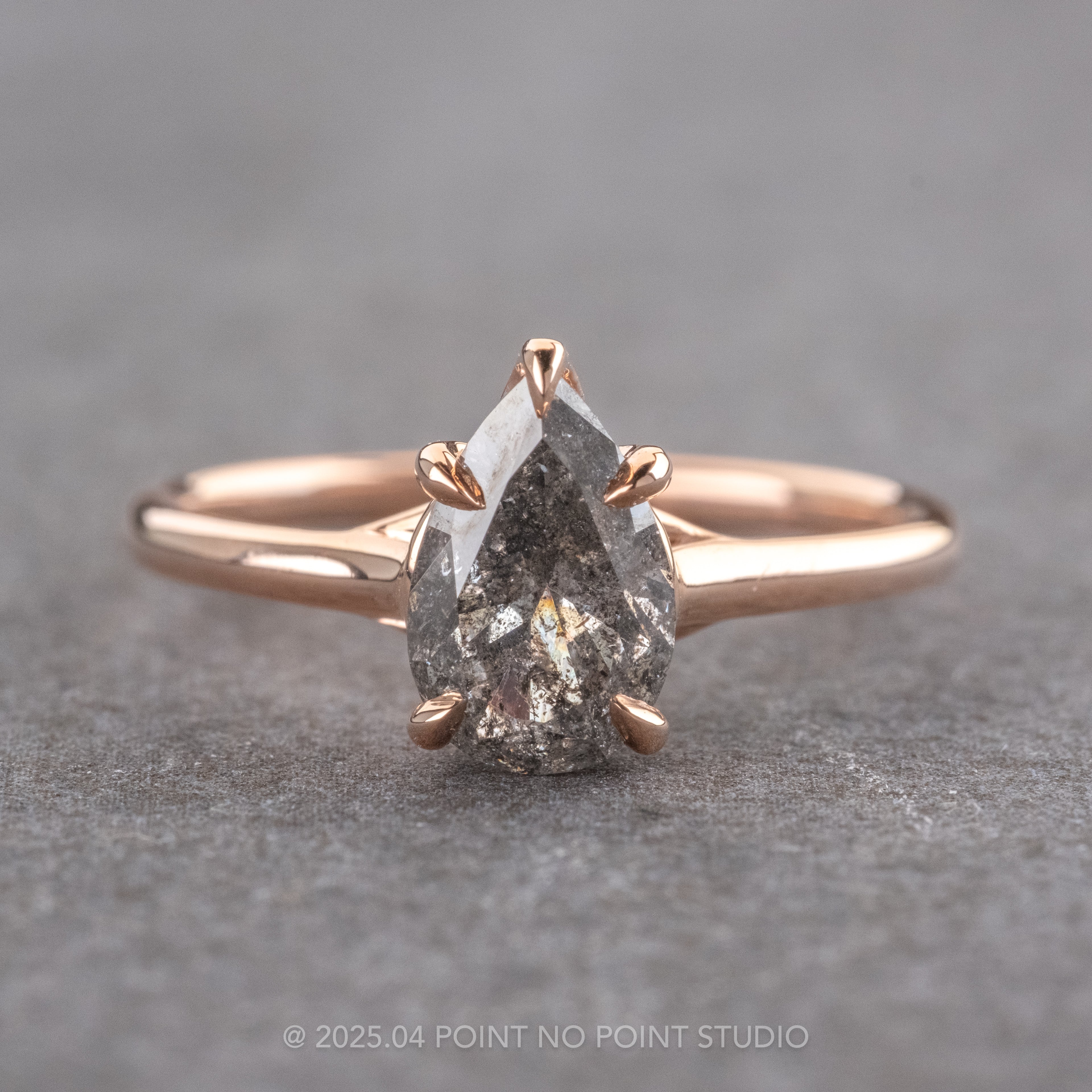 1.24 Carat Canadian Salt and Pepper Pear Diamond Engagement Ring, Madeline Setting, 14k Rose Gold