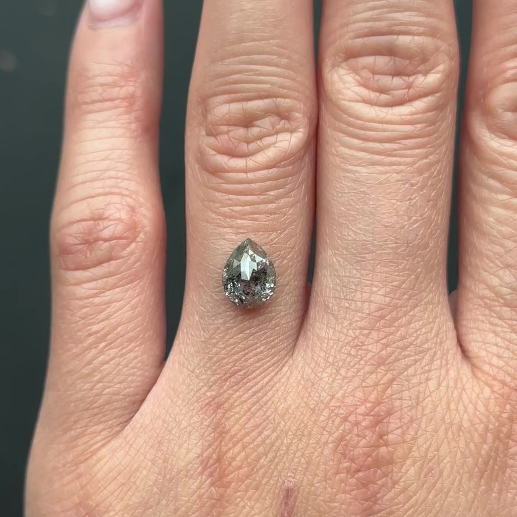 1.69 Carat Salt and Pepper Double Cut Pear Diamond