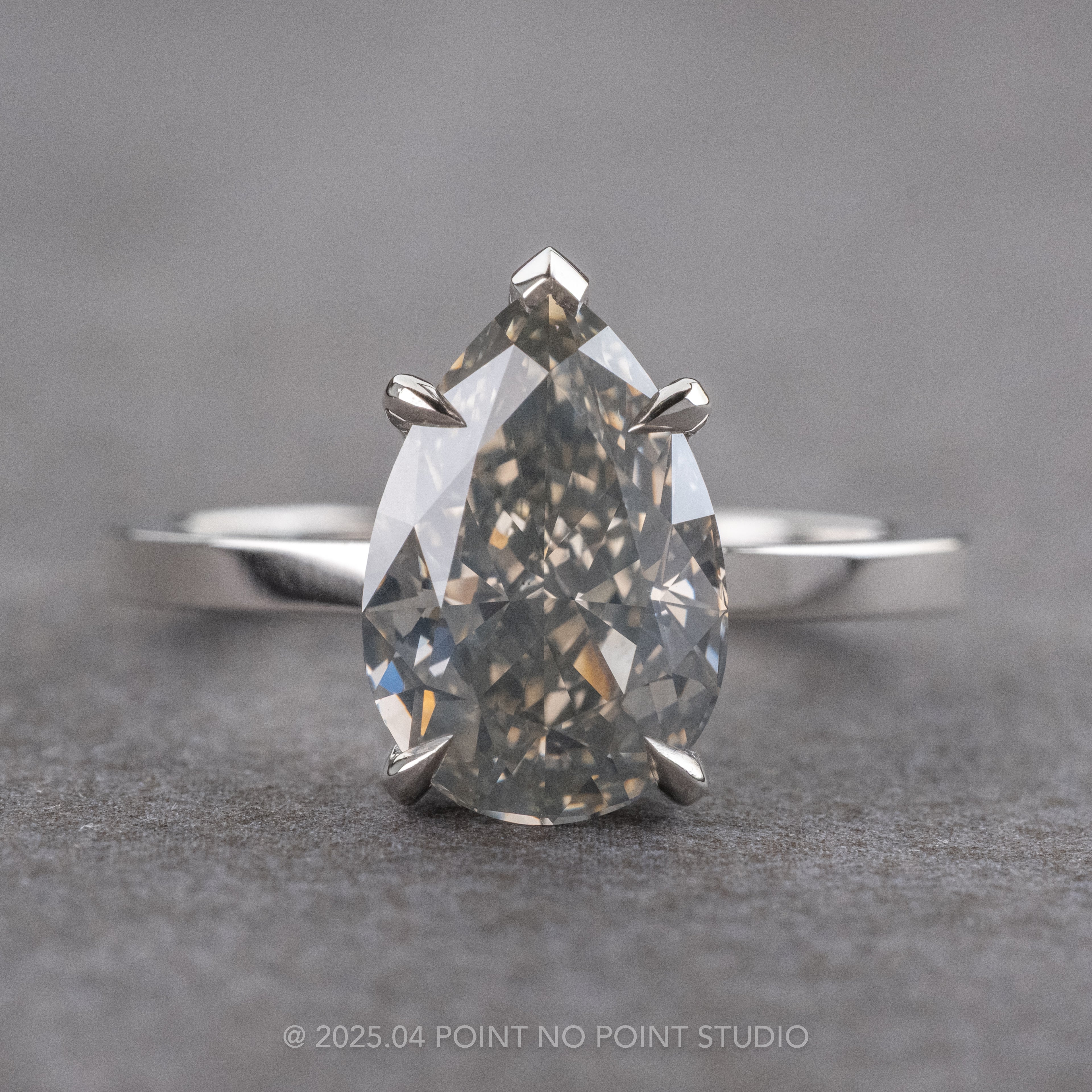 3.19 Carat Fancy Grey Pear Diamond Engagement Ring, Charlize Setting, Platinum