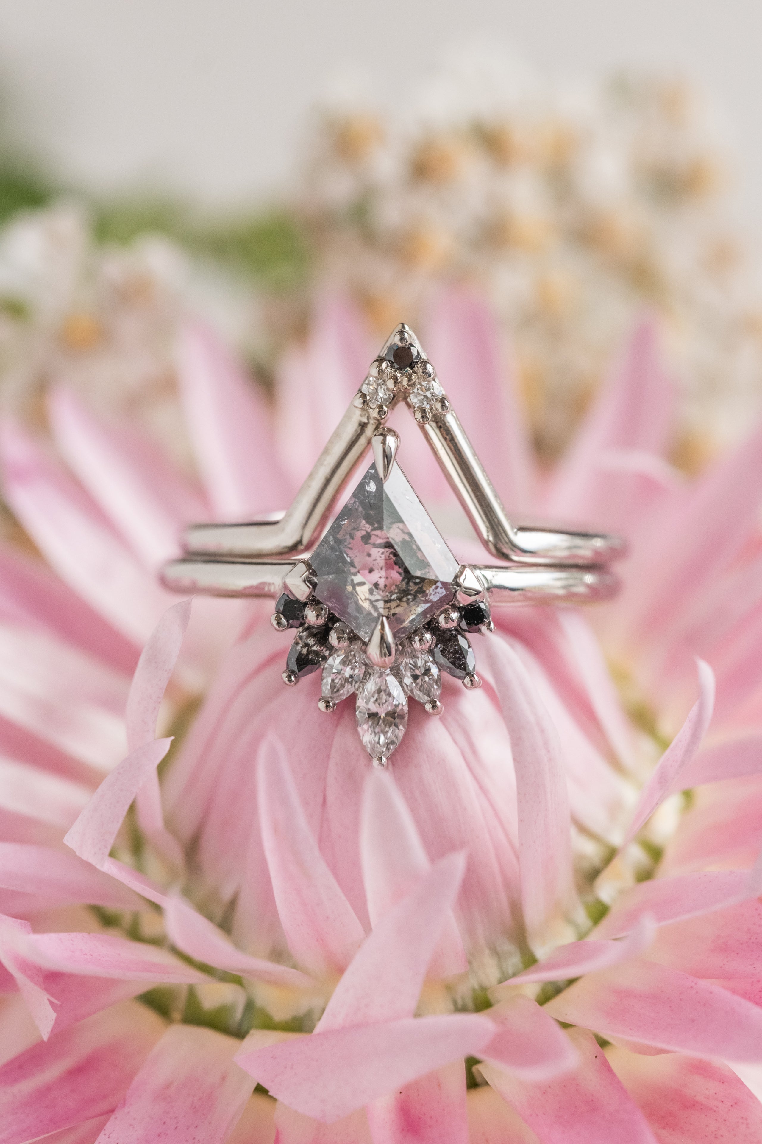 Salt and Pepper Kite Diamond Engagement Ring