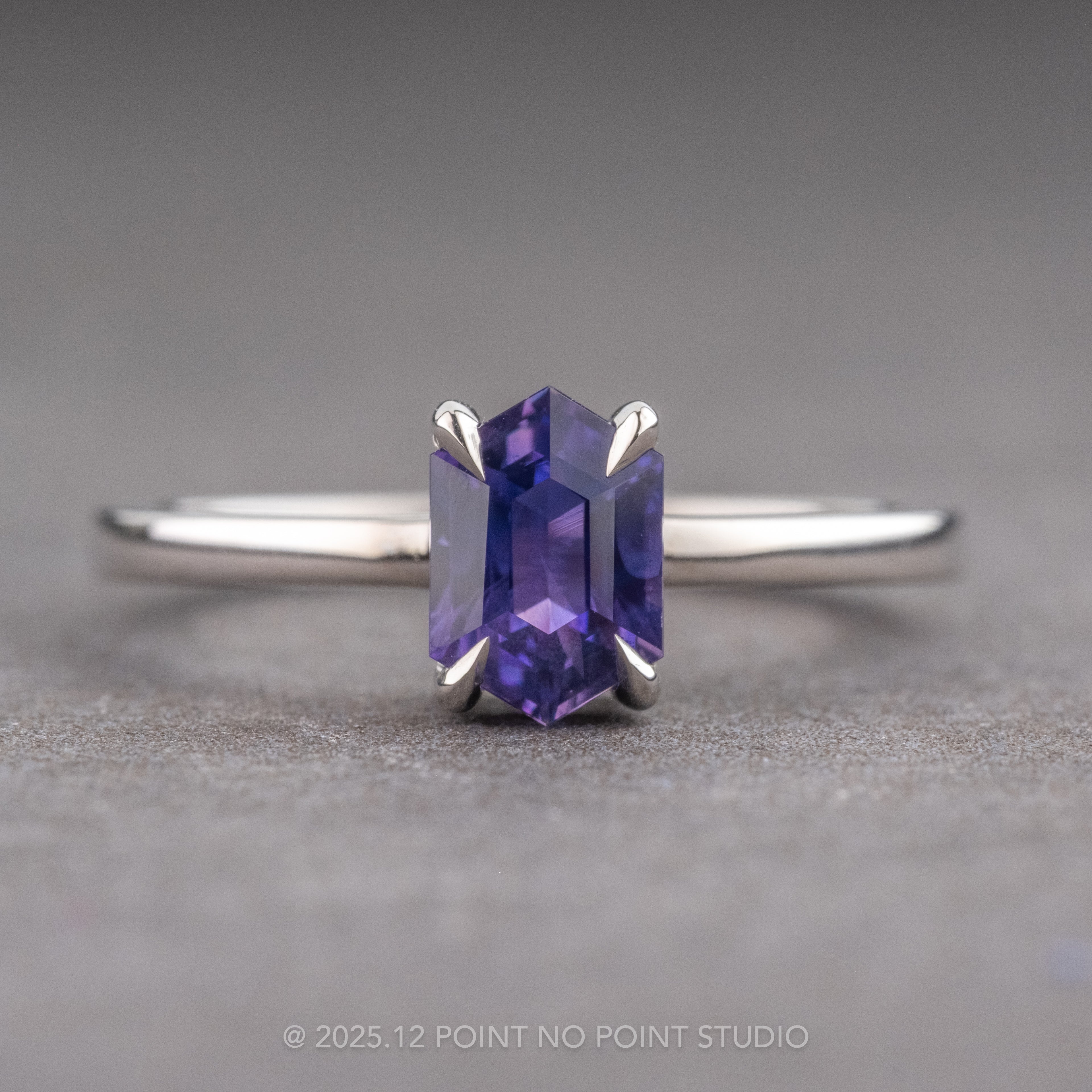 1.04 Carat Purple Hexagon Sapphire Engagement Ring, Basket Jane Setting, Platinum