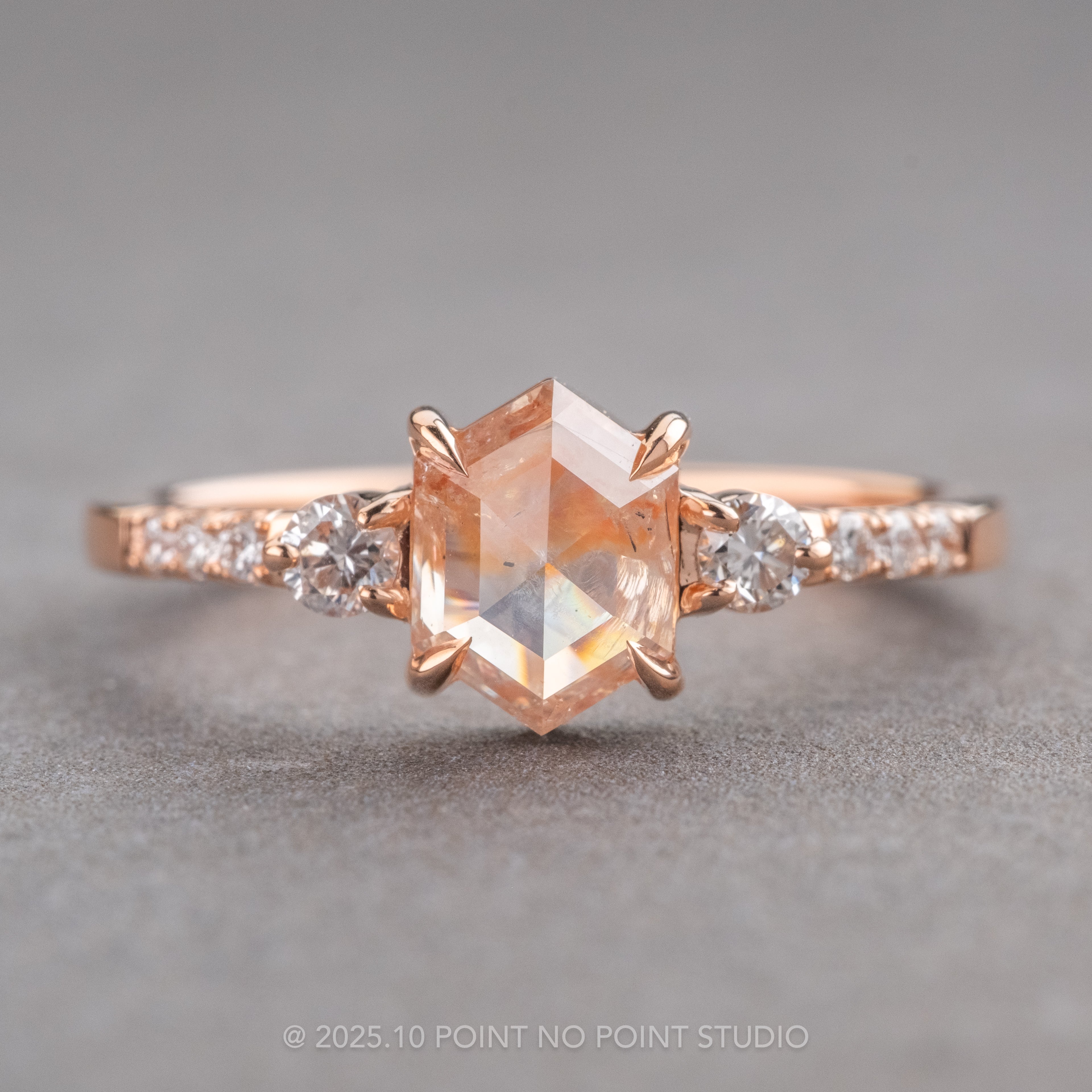 1.09 Carat Icy Orange Hexagon Diamond Engagement Ring, Eliza Setting, 14K Rose Gold