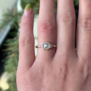 1.13 Carat Icy White Hexagon Diamond Engagement Ring, Quinn Setting, 14K Peach Gold