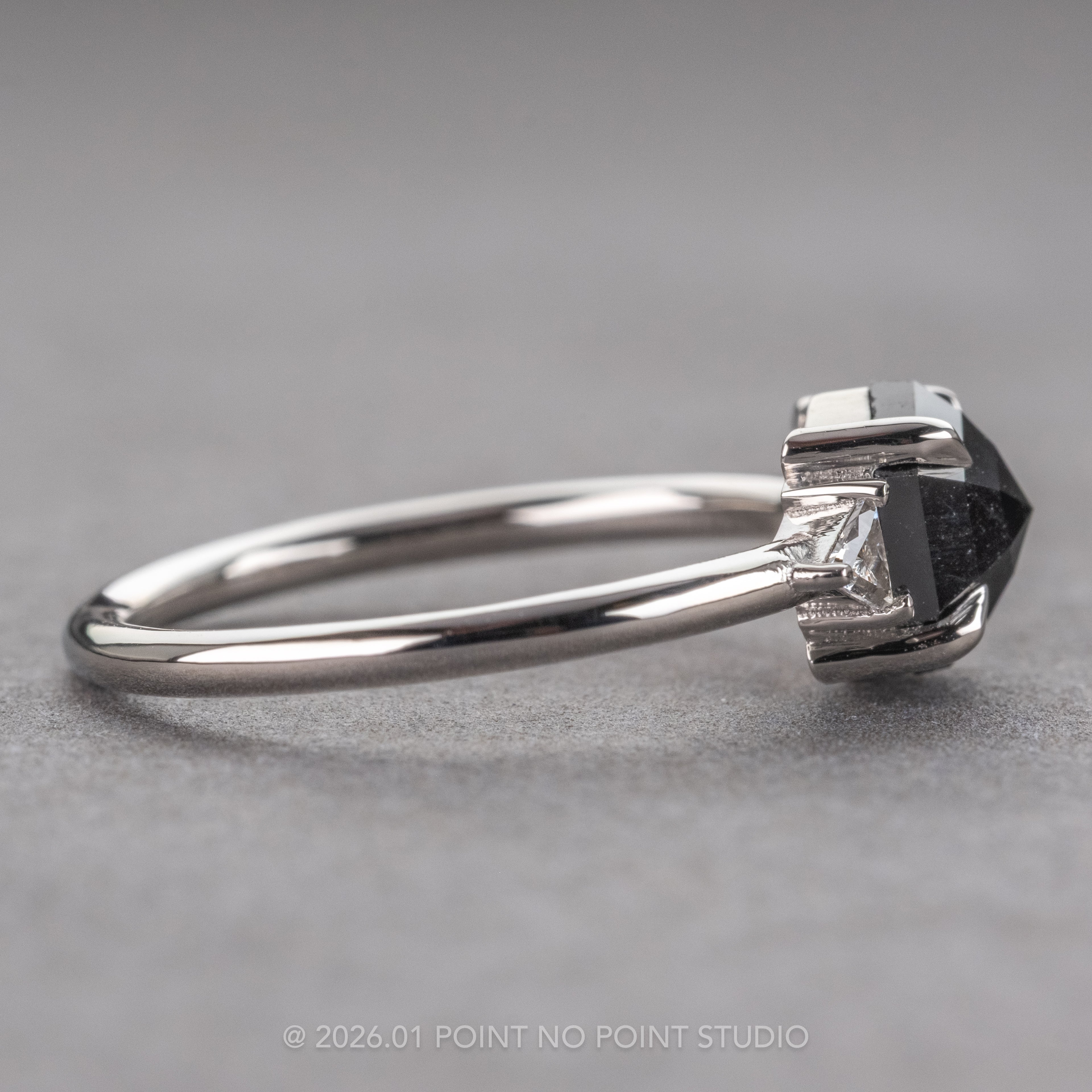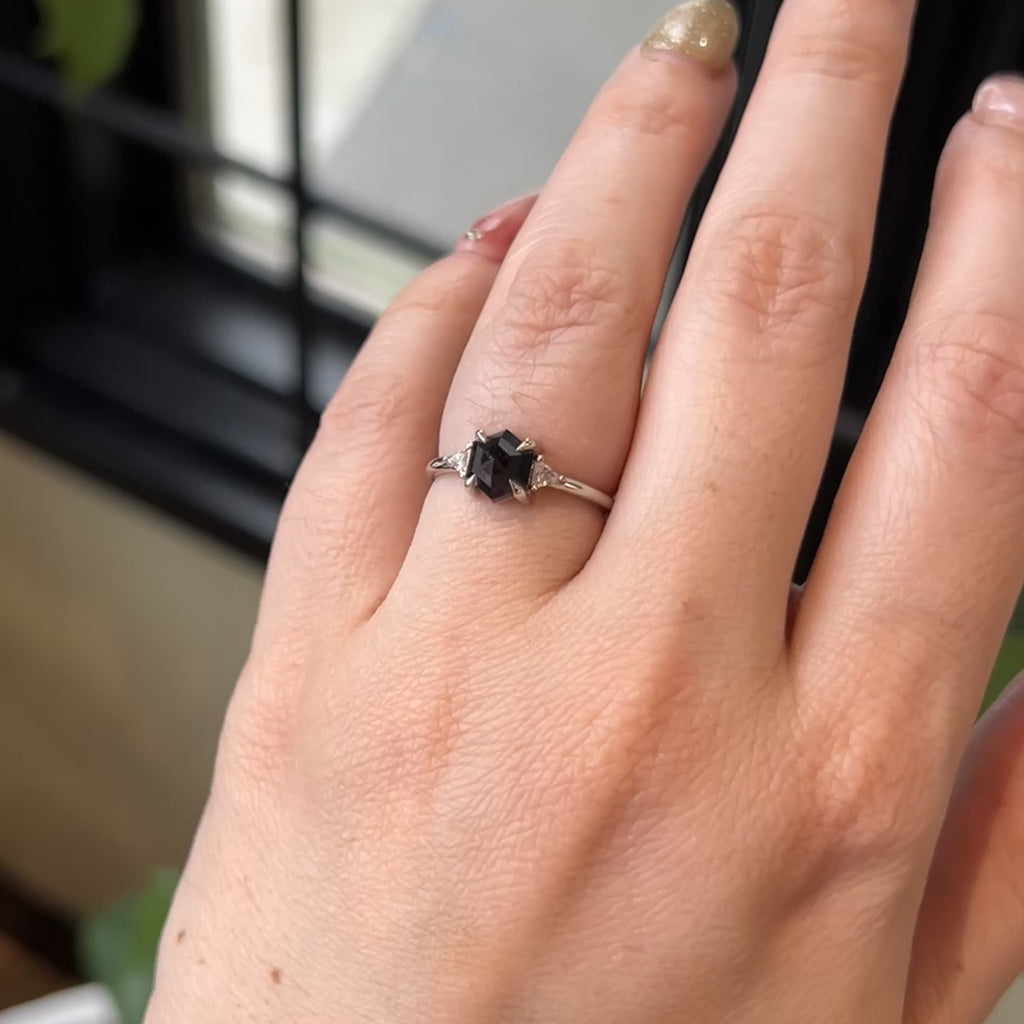 1.23 Carat Black Hexagon Diamond Engagement Ring, Zoe Setting, Platinum