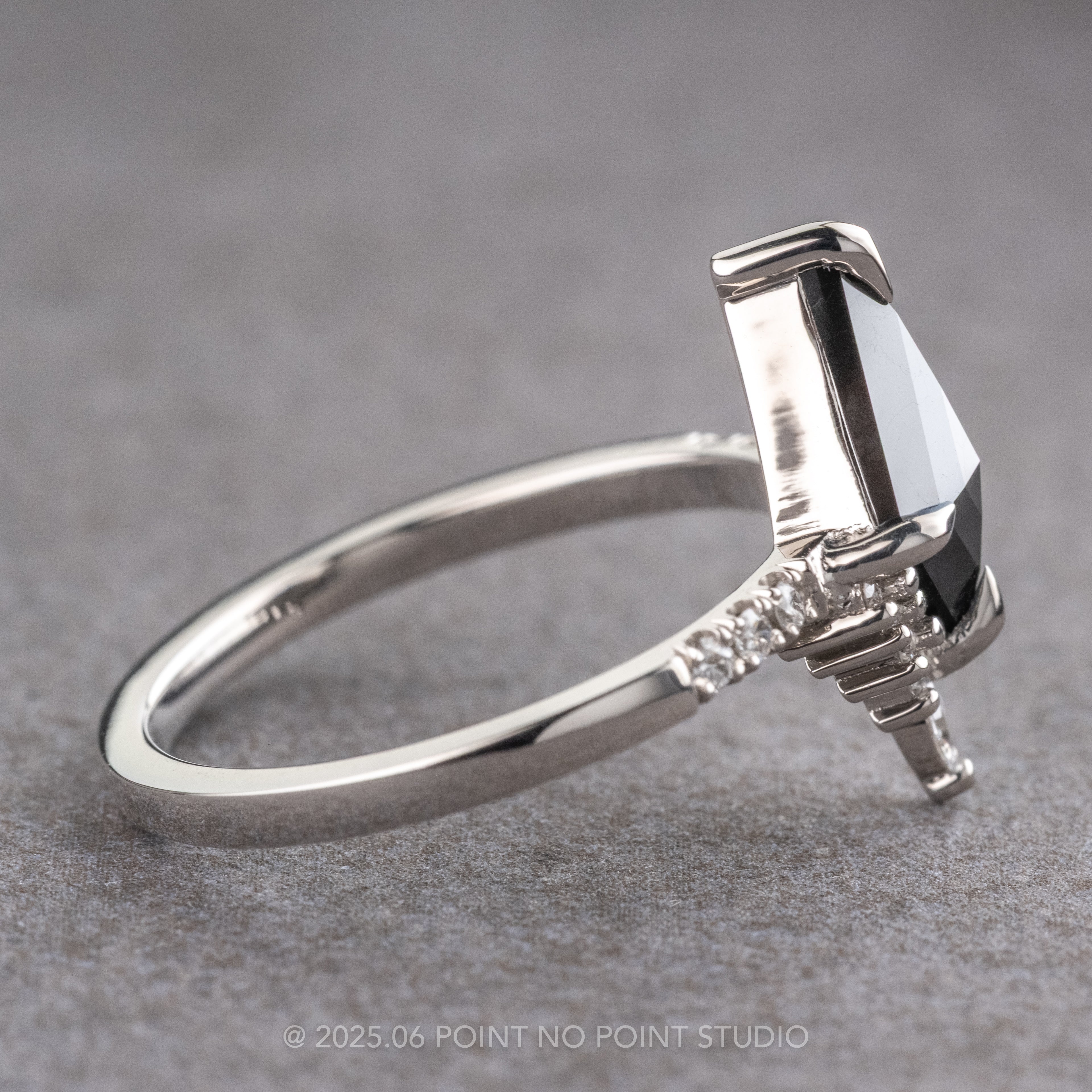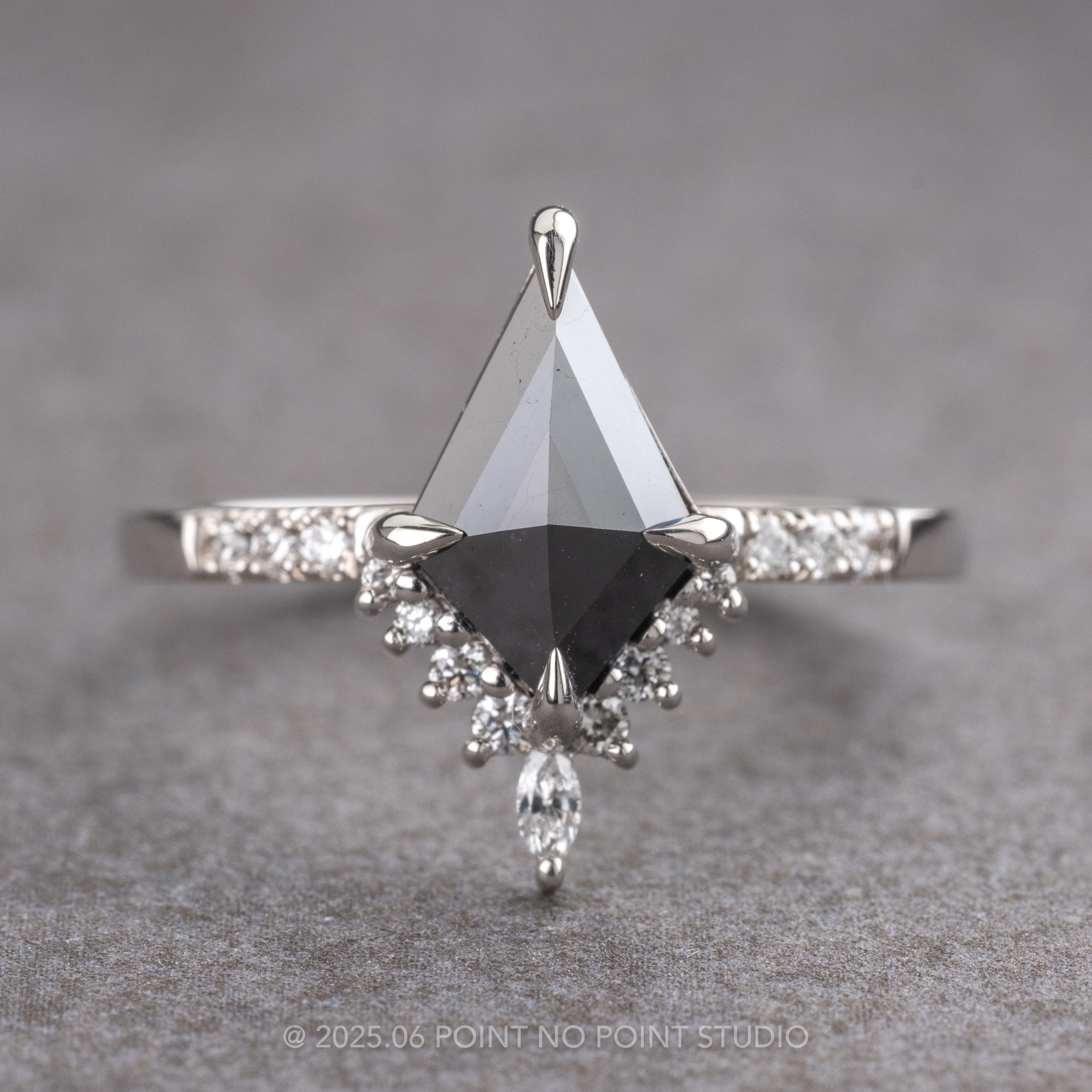 1.31 Carat Black Kite Diamond Engagement Ring, Avaline Setting, Platinum