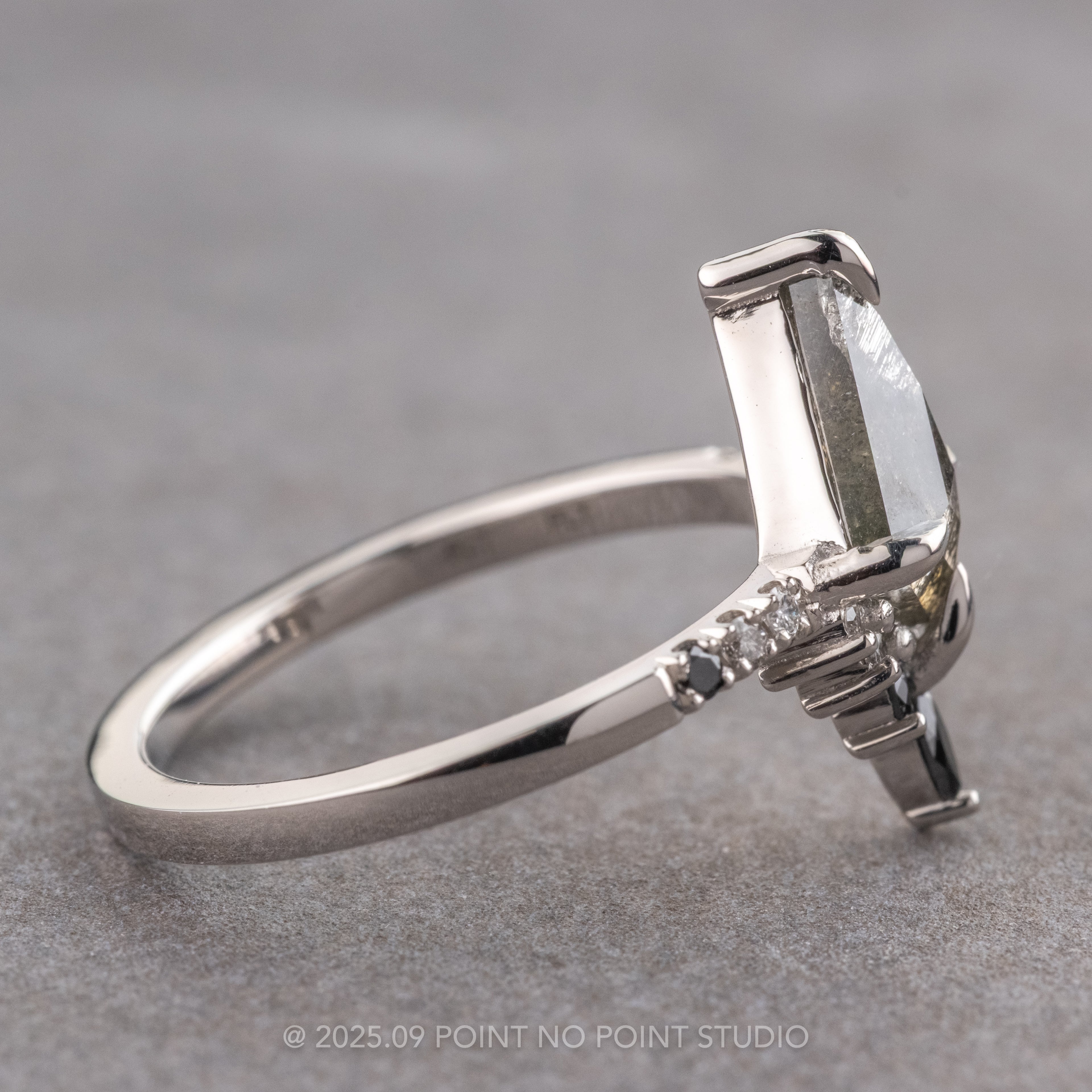 1.31 Carat Salt and Pepper Kite Diamond Engagement Ring, Ombre Avaline Setting, Platinum