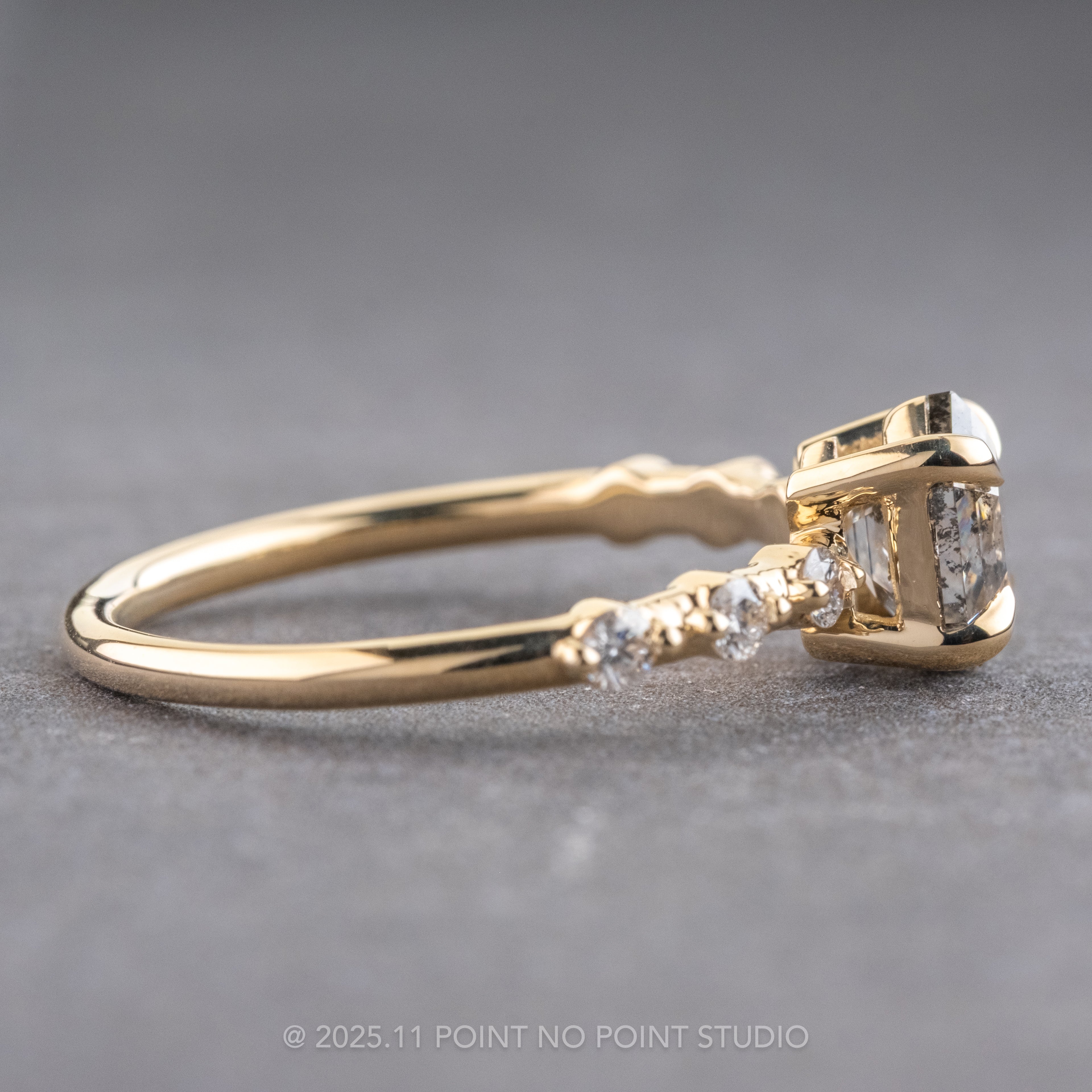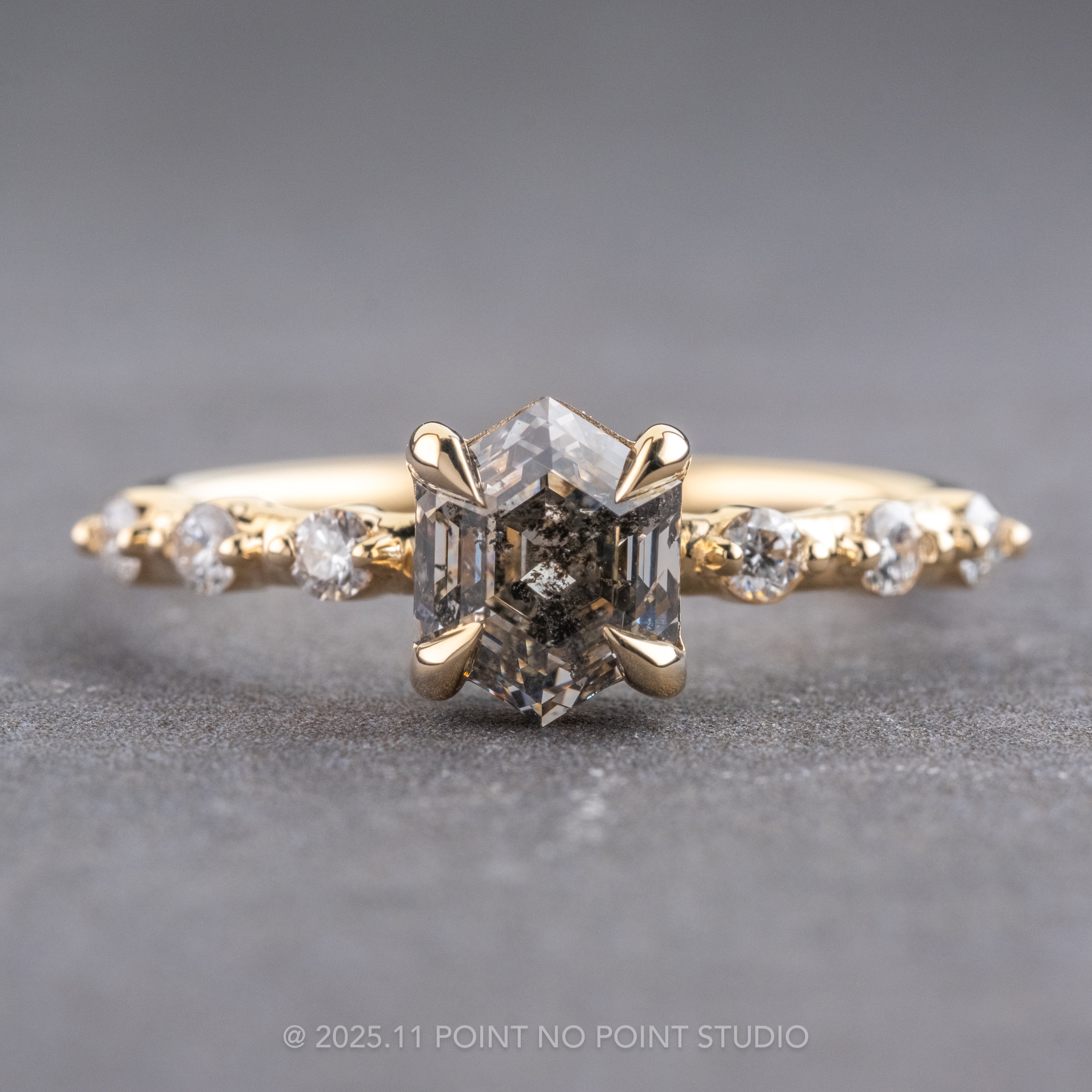 1.32 Carat Canadian Salt and Pepper Hexagon Diamond Engagement Ring, Nova Setting, 14k Yellow Gold