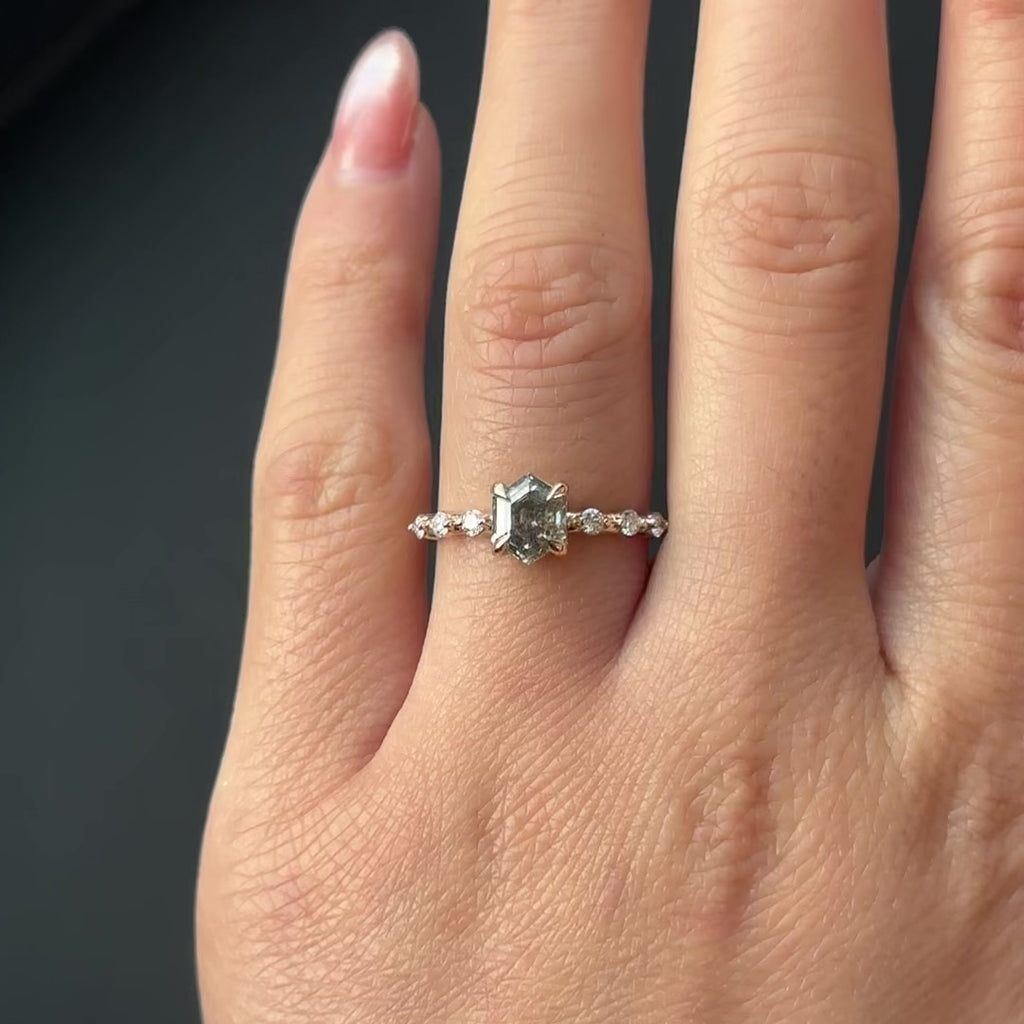 Canadian Salt and PepperĀ Hexagon Diamond Engagement Ring
