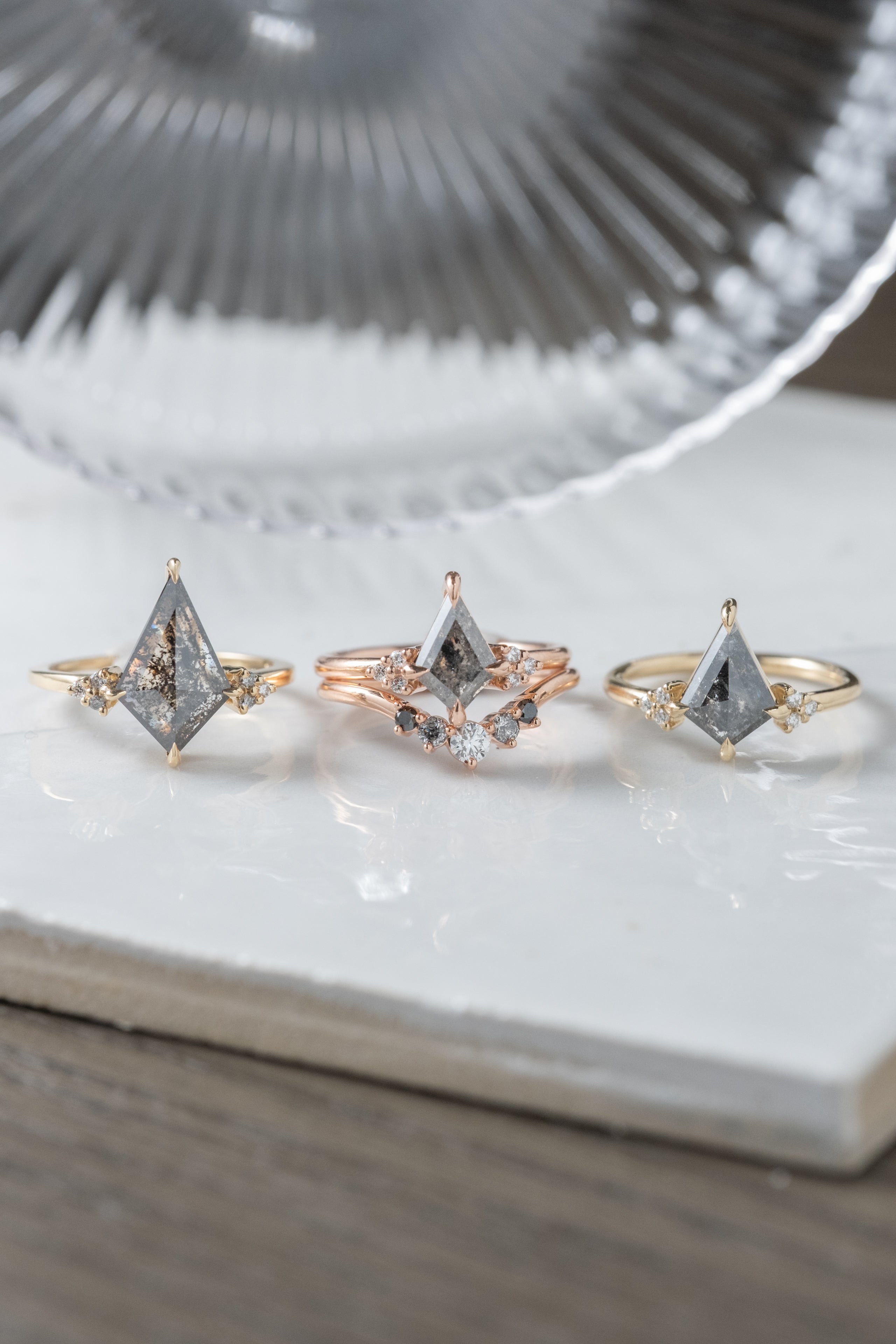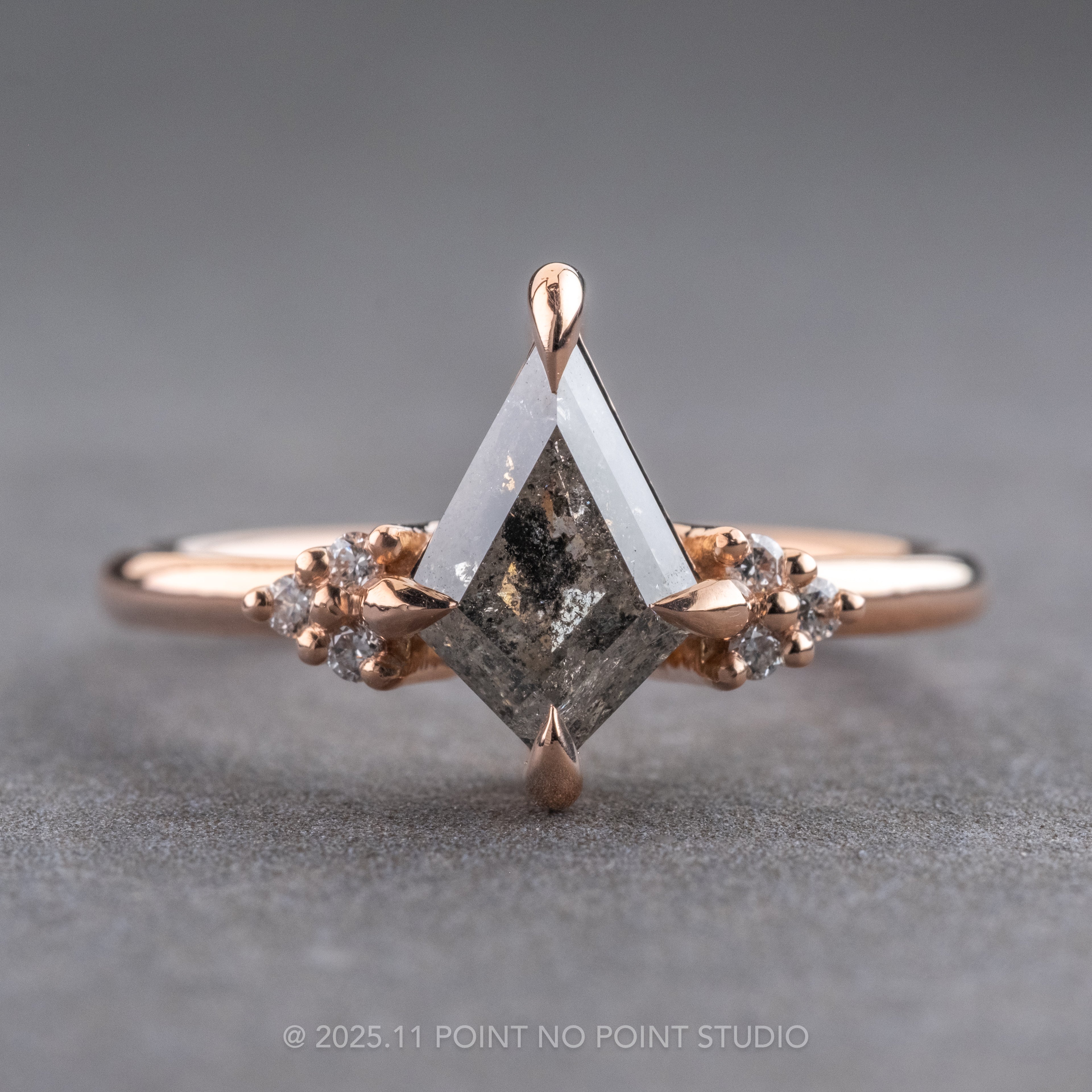 1.32 Carat Salt and Pepper Kite Diamond Engagement Ring, Quinn Setting, 14k Rose Gold