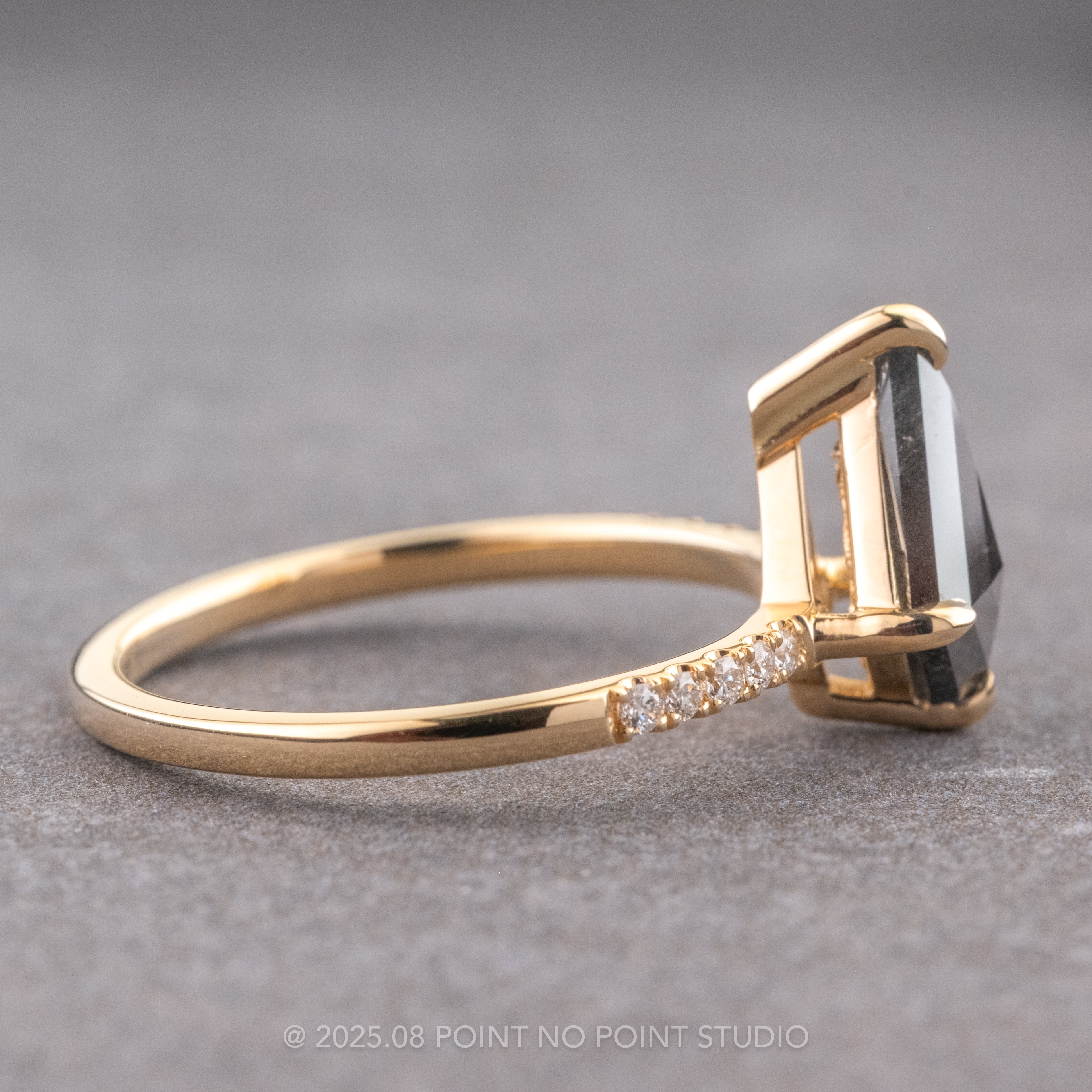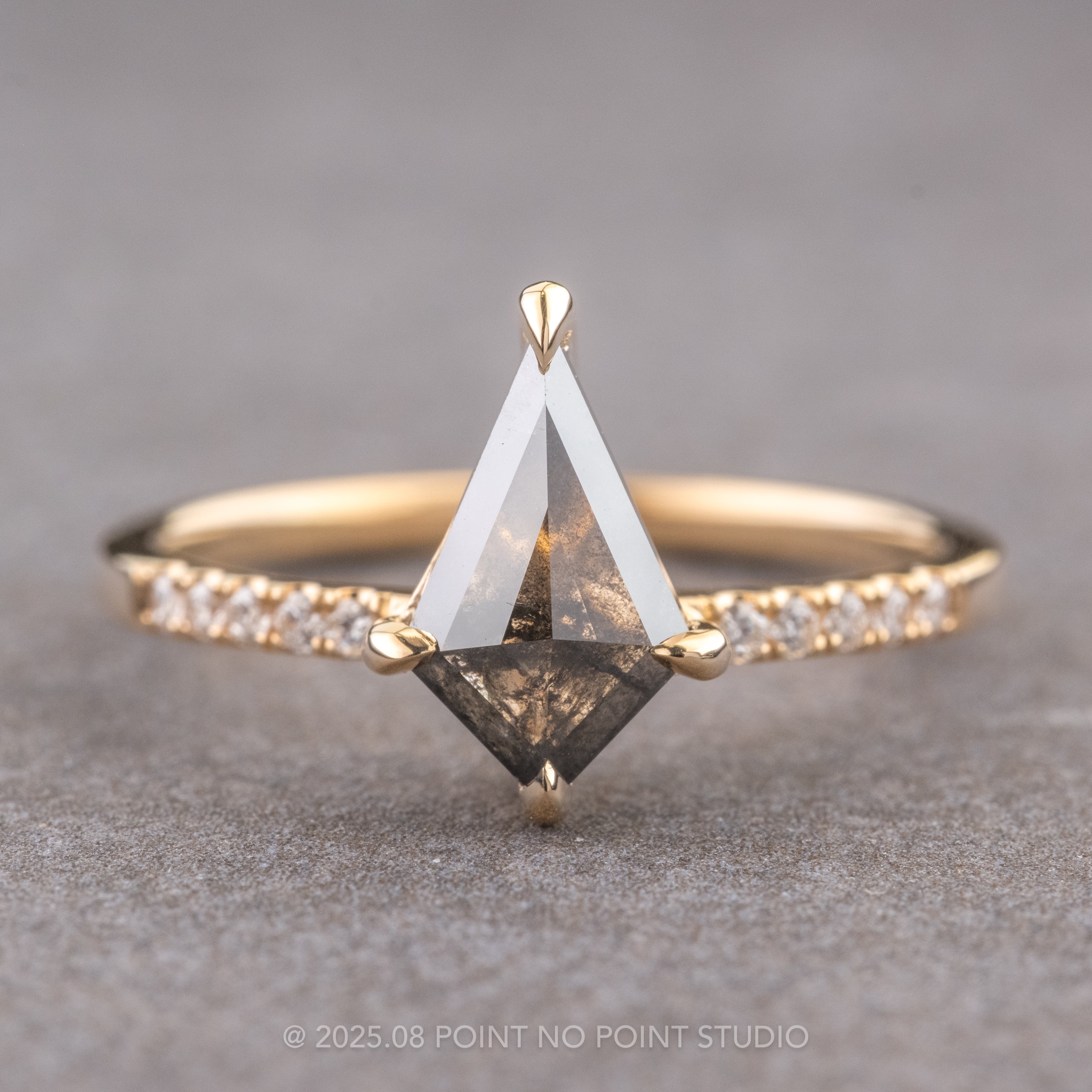 1.38 Carat Salt and Pepper Kite Diamond Engagement Ring, Jules Setting, 14K Yellow Gold