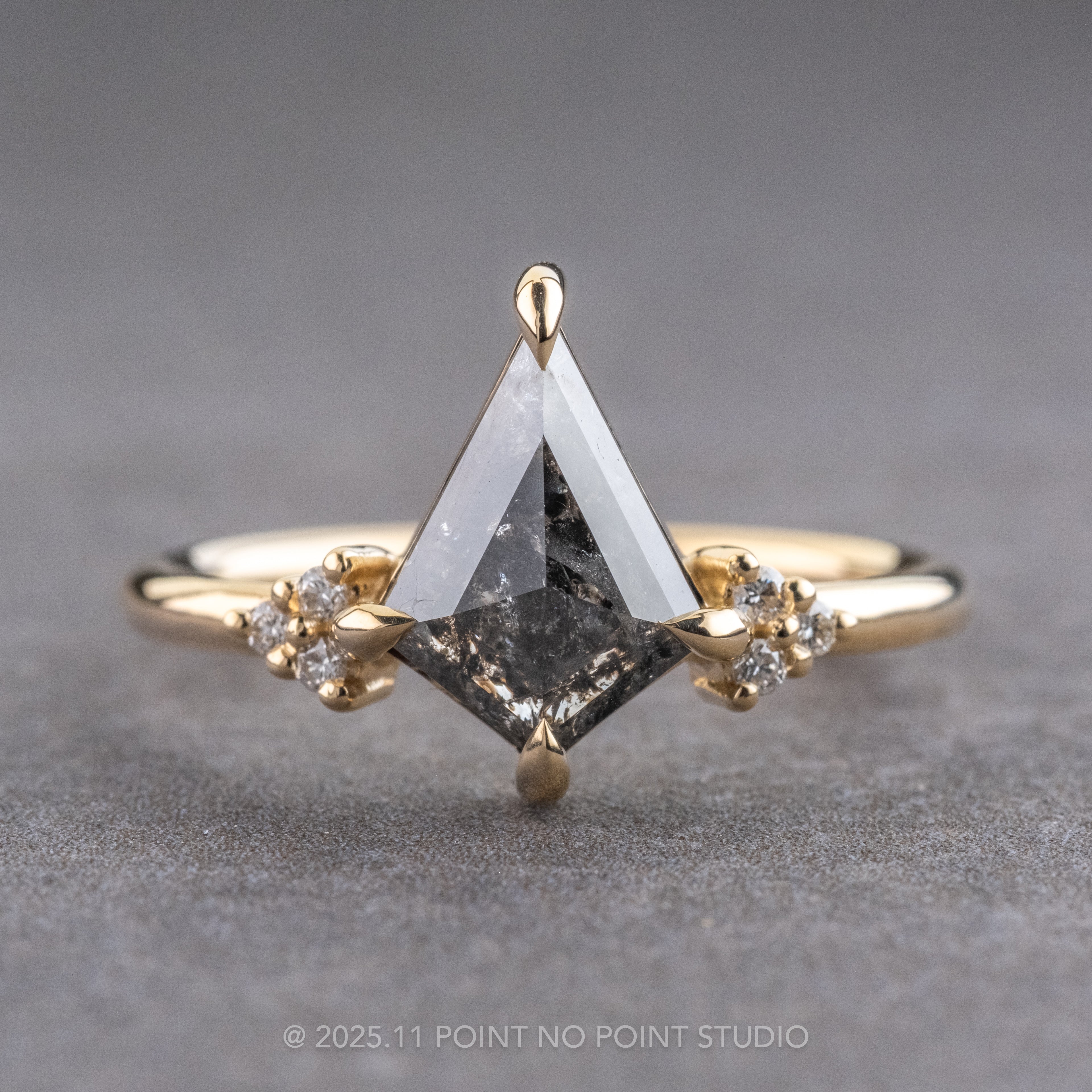 1.40 Carat Black Speckled Kite Diamond Engagement Ring, Quinn Setting, 14k Yellow Gold