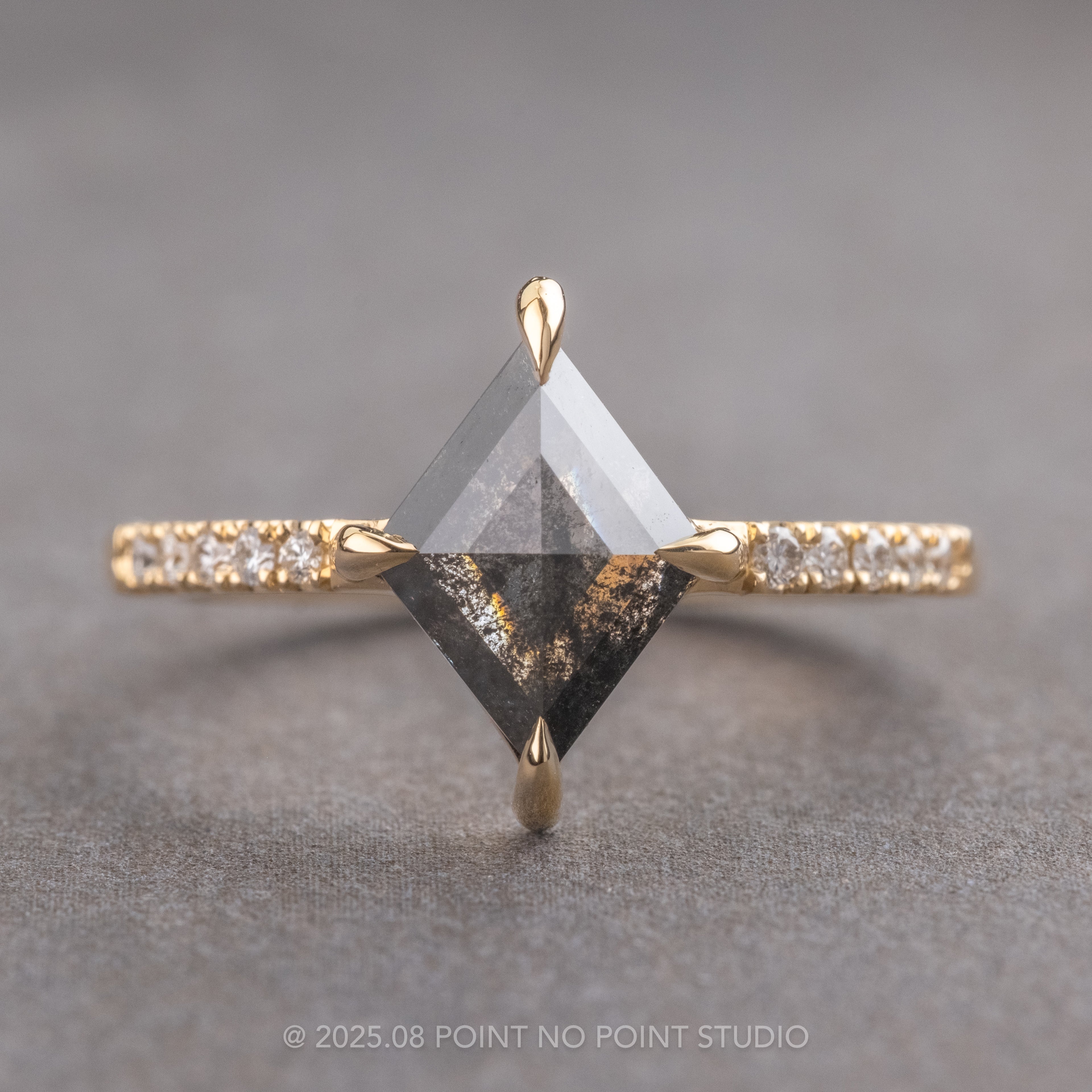 1.41 Carat Black Speckled Lozenge Diamond Engagement Ring, Jules Setting, 14K Yellow Gold