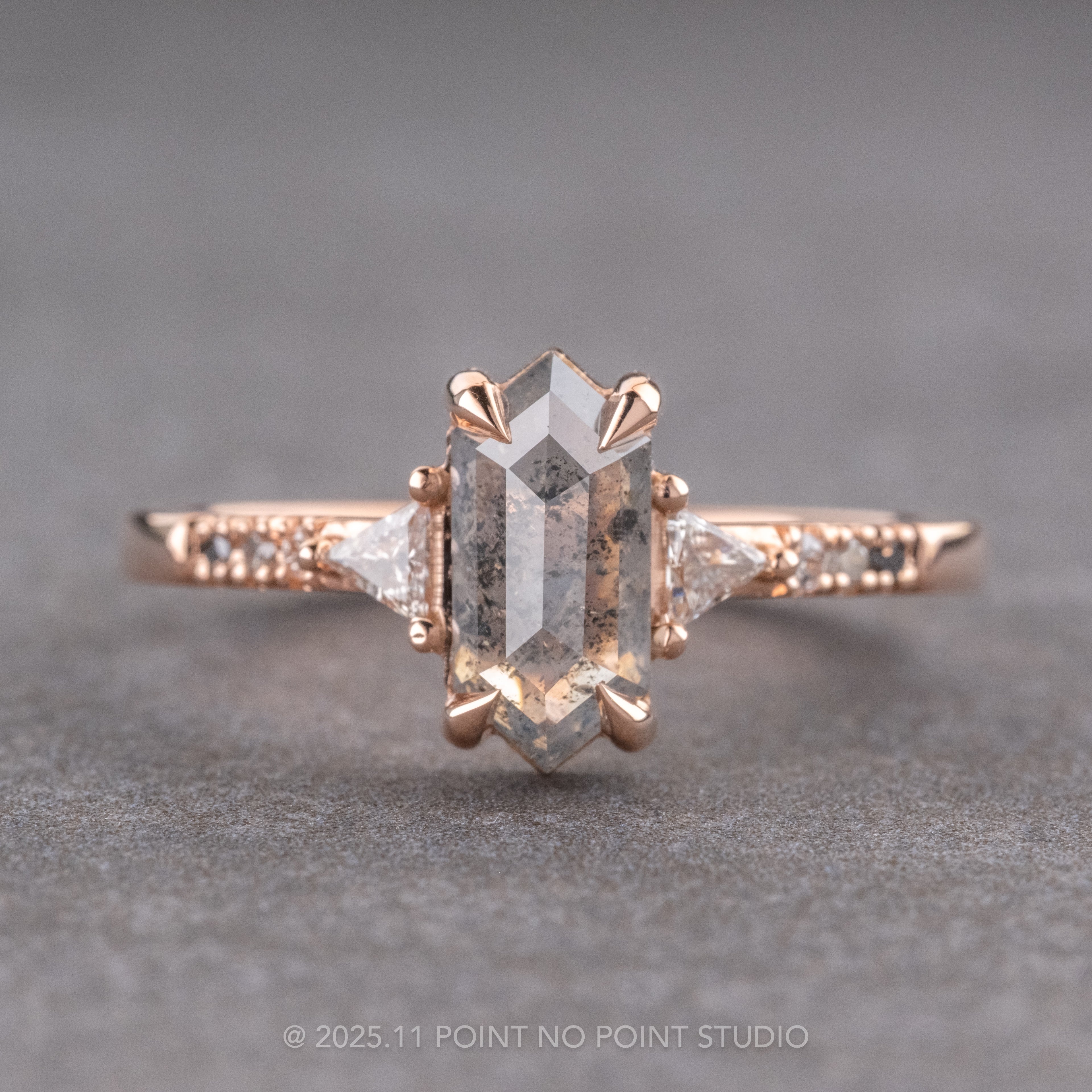 1.41 Carat Salt and Pepper Hexagon Diamond Engagement Ring, Ombre Eliza Setting, 14K Rose Gold