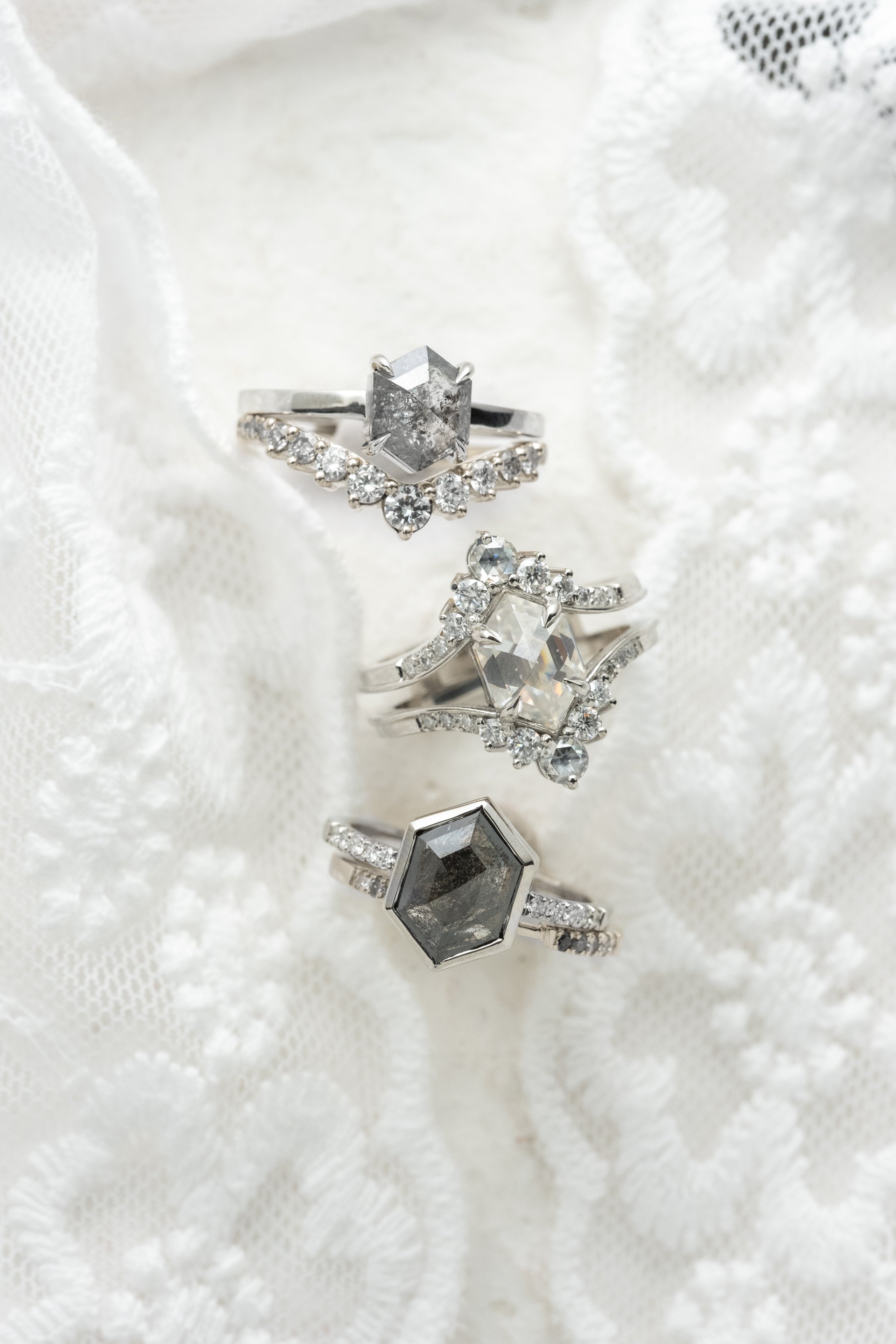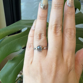 Salt and Pepper Hexagon Diamond Engagement Ring
