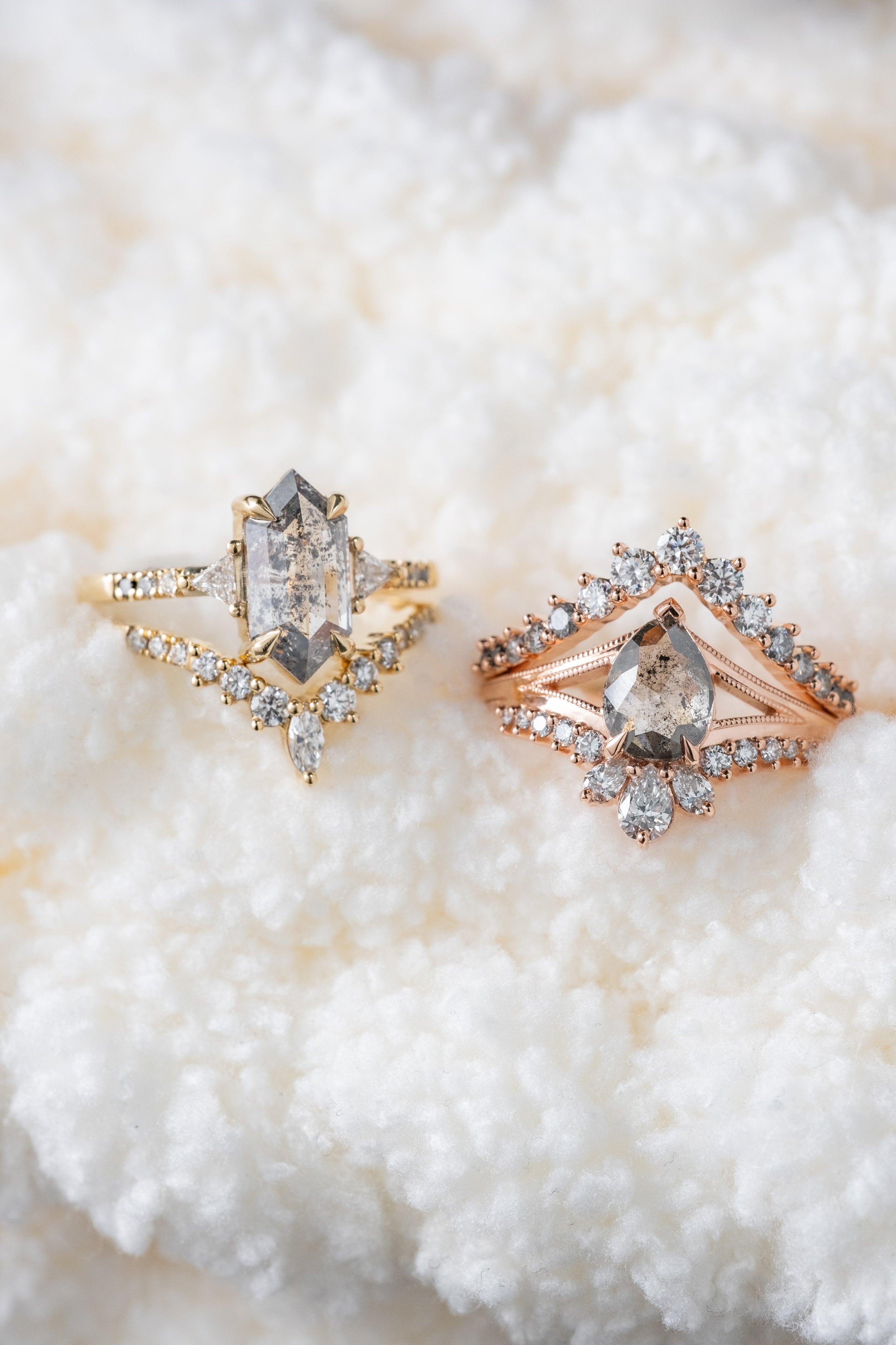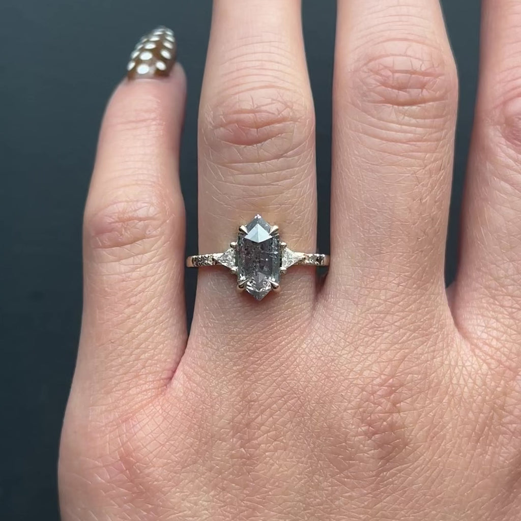 Salt and Pepper Hexagon Diamond Engagement Ring