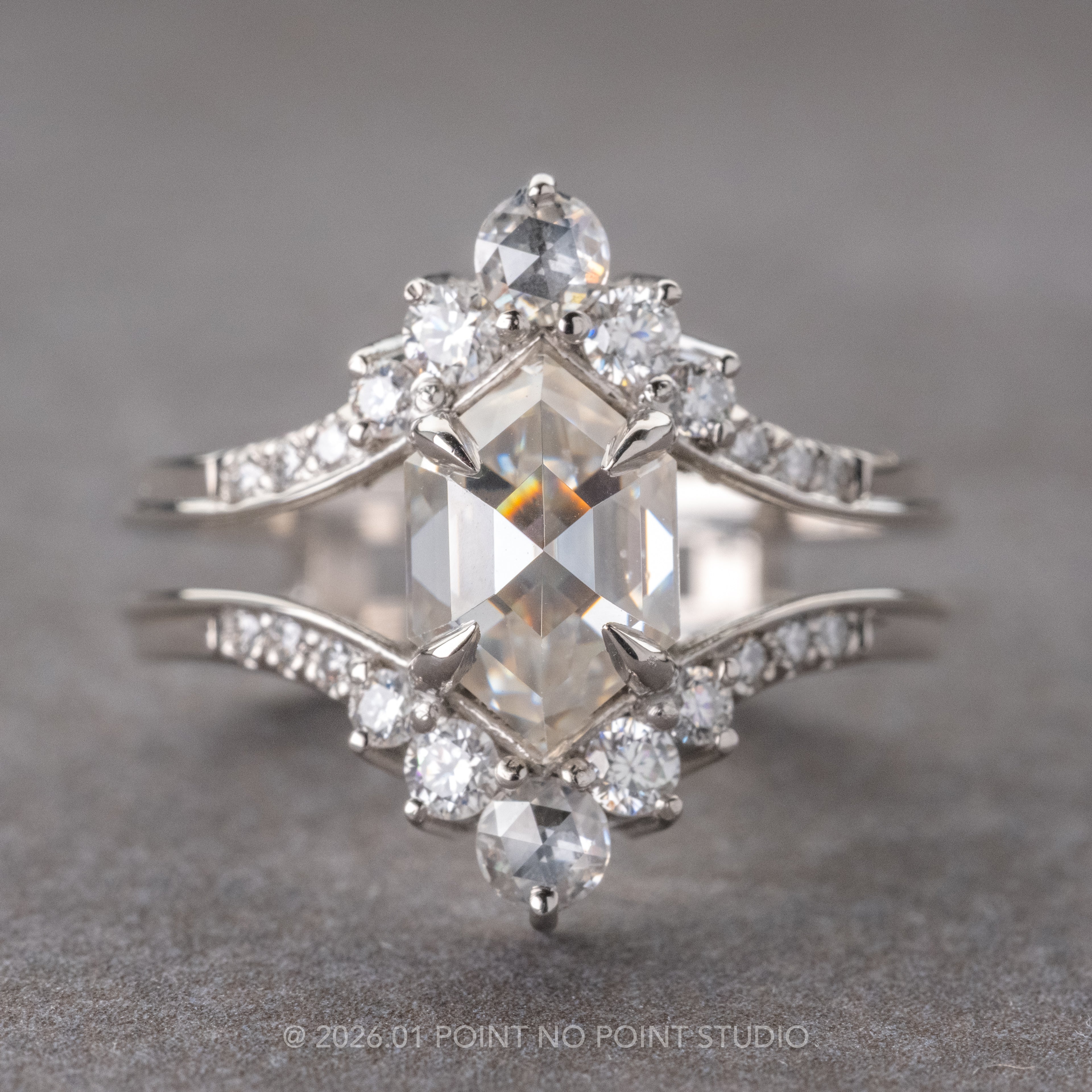 2.01 Carat Hexagon Moissanite and Diamond Engagement Ring, Empress Setting, Platinum