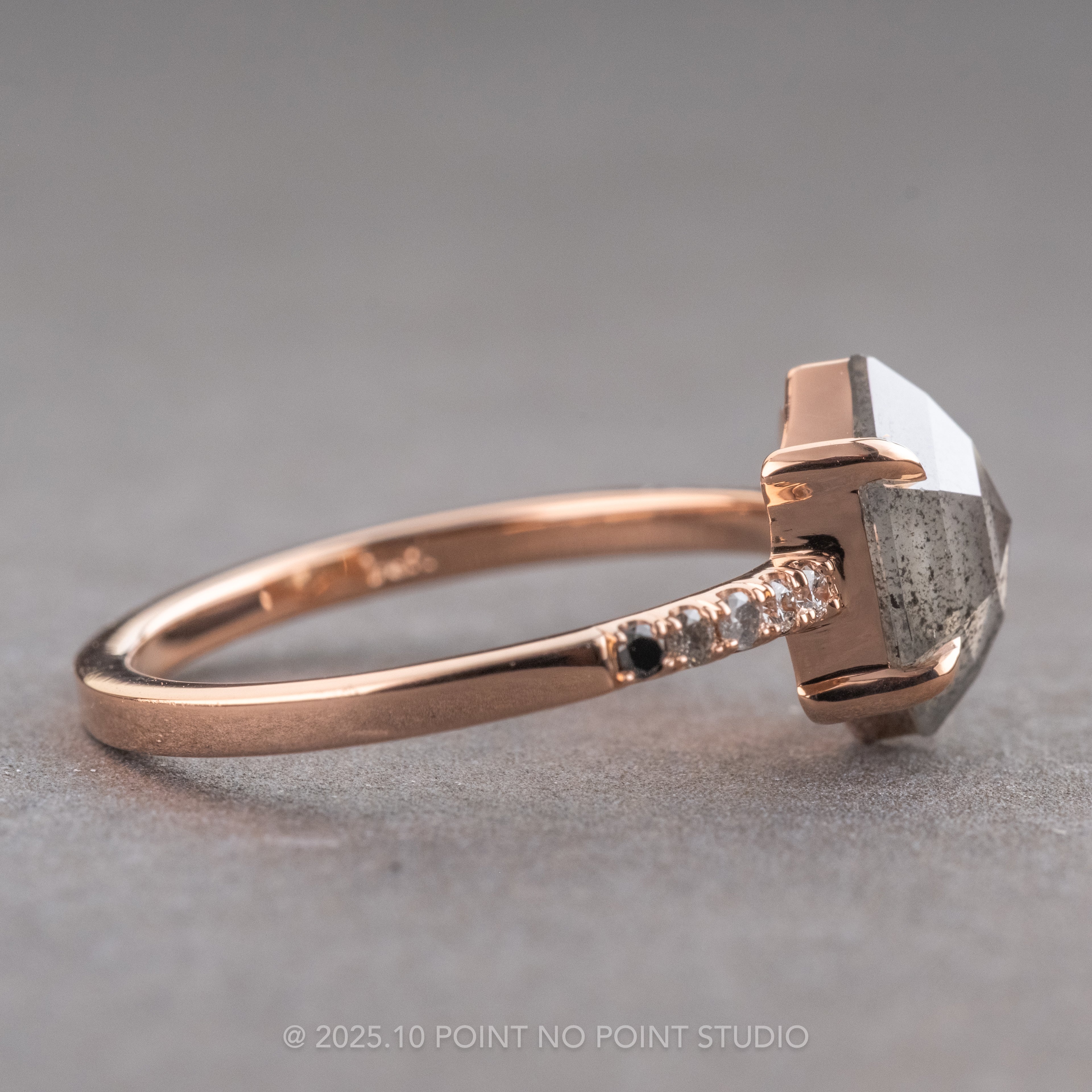 2.06 Carat Salt and Pepper Hexagon Diamond Engagement Ring, Ombre Jules Setting, 14K Rose Gold