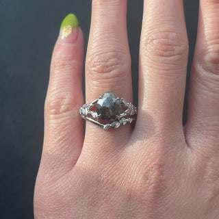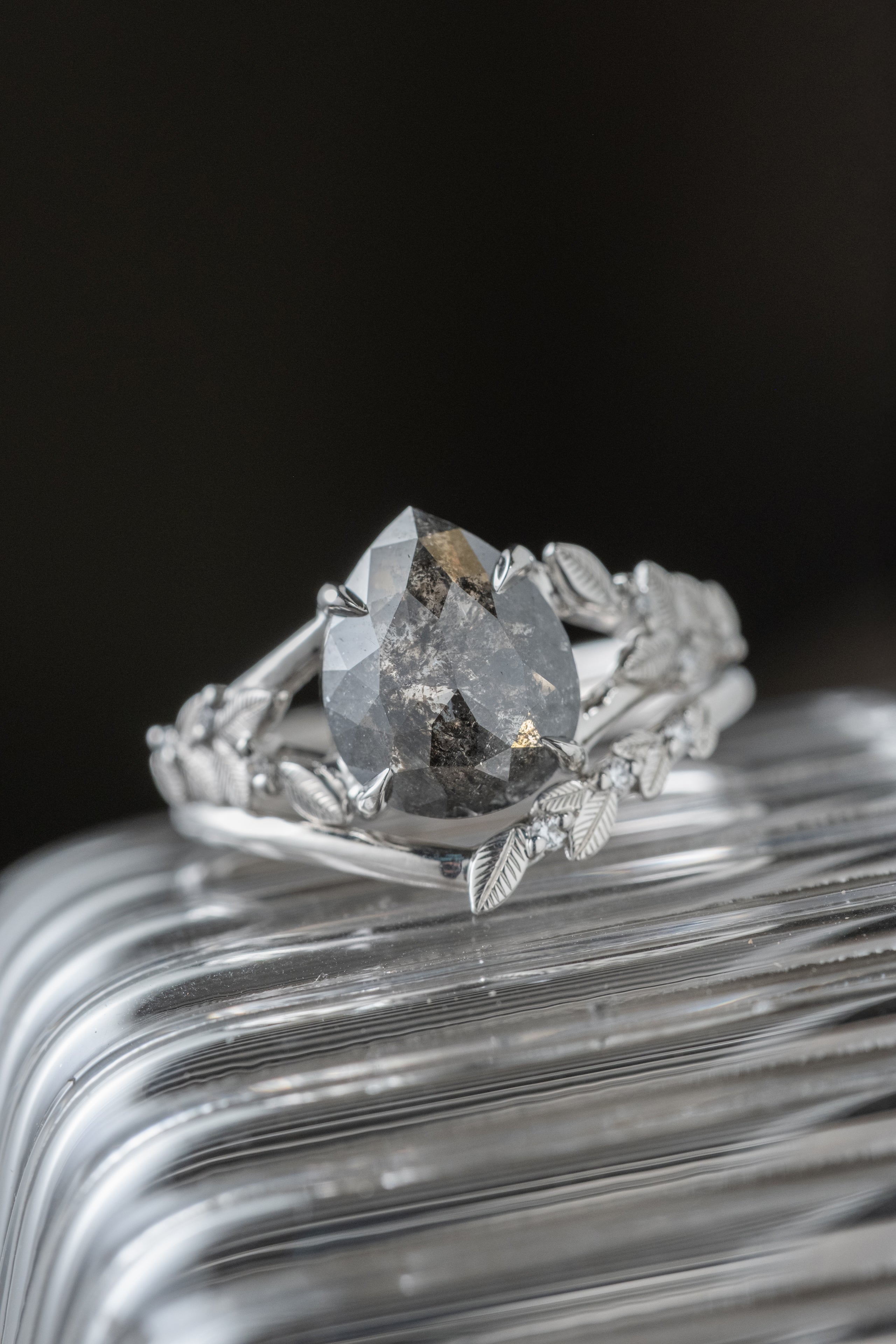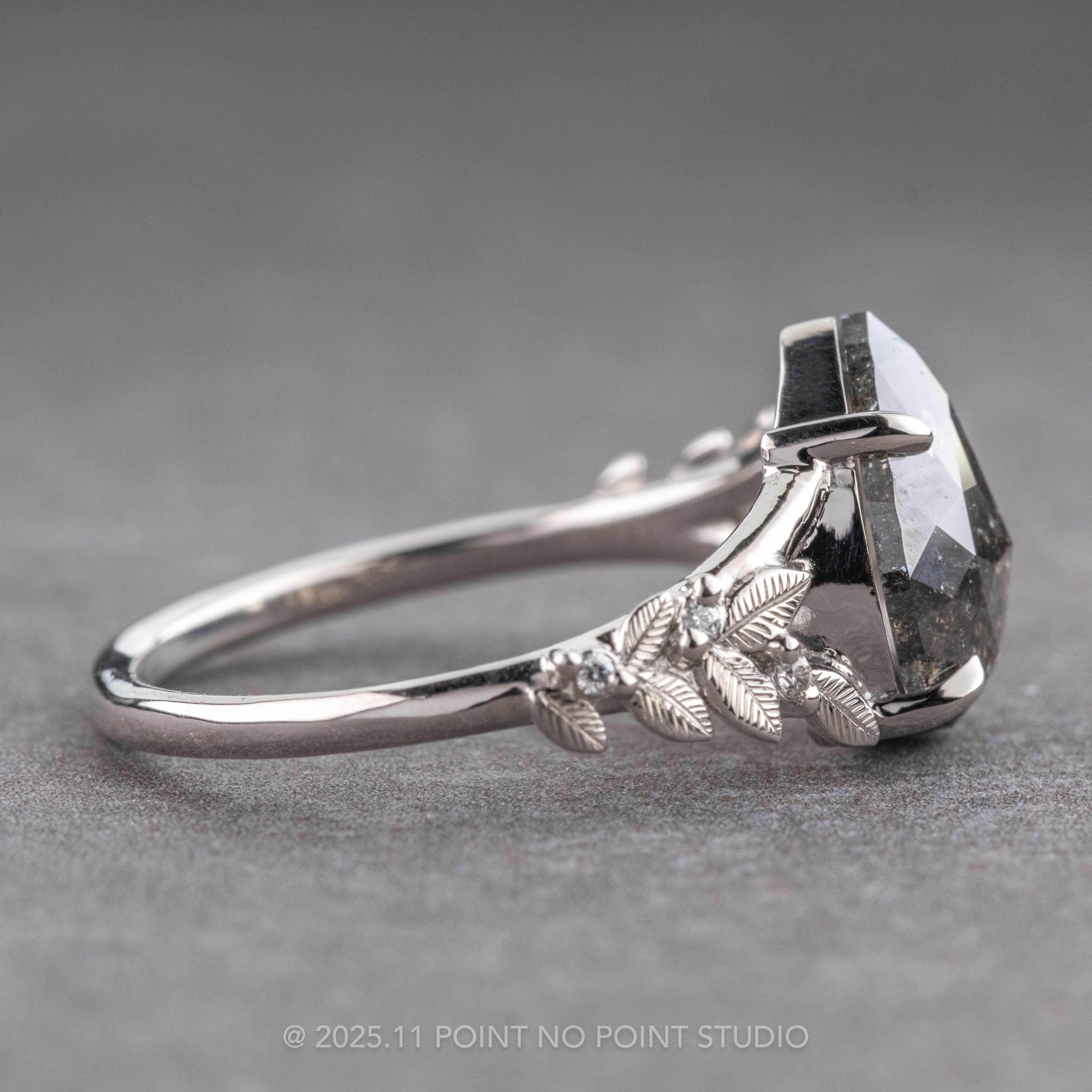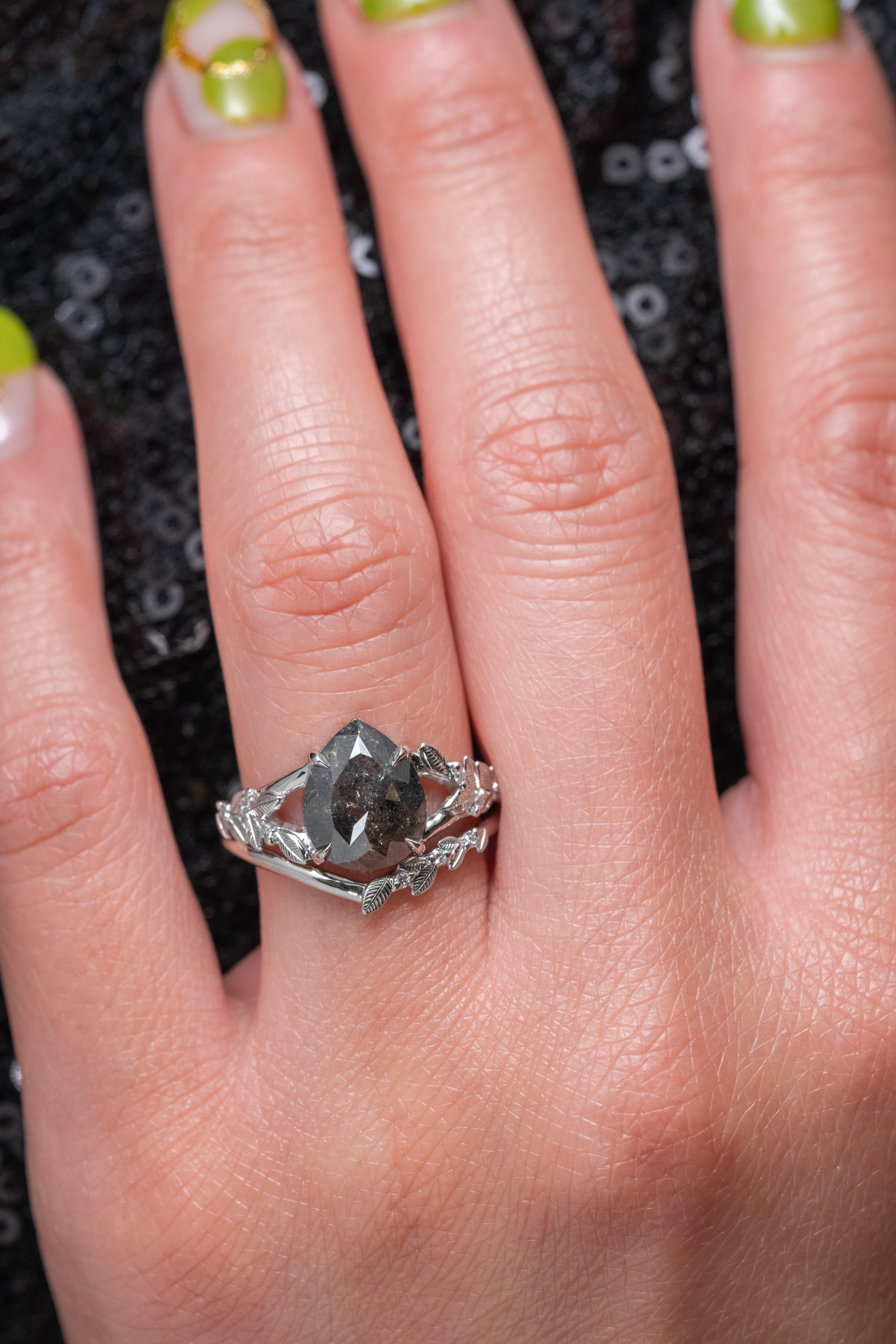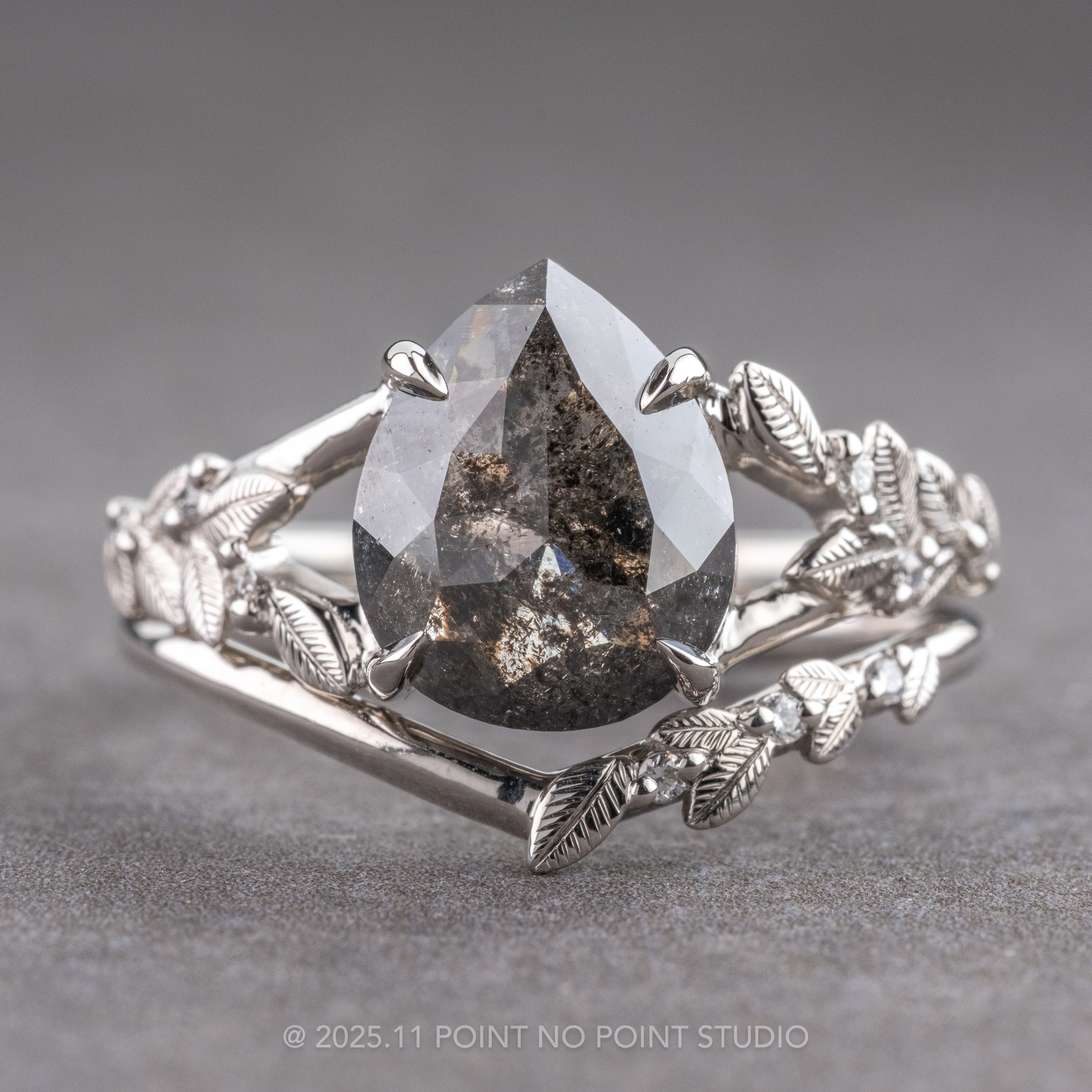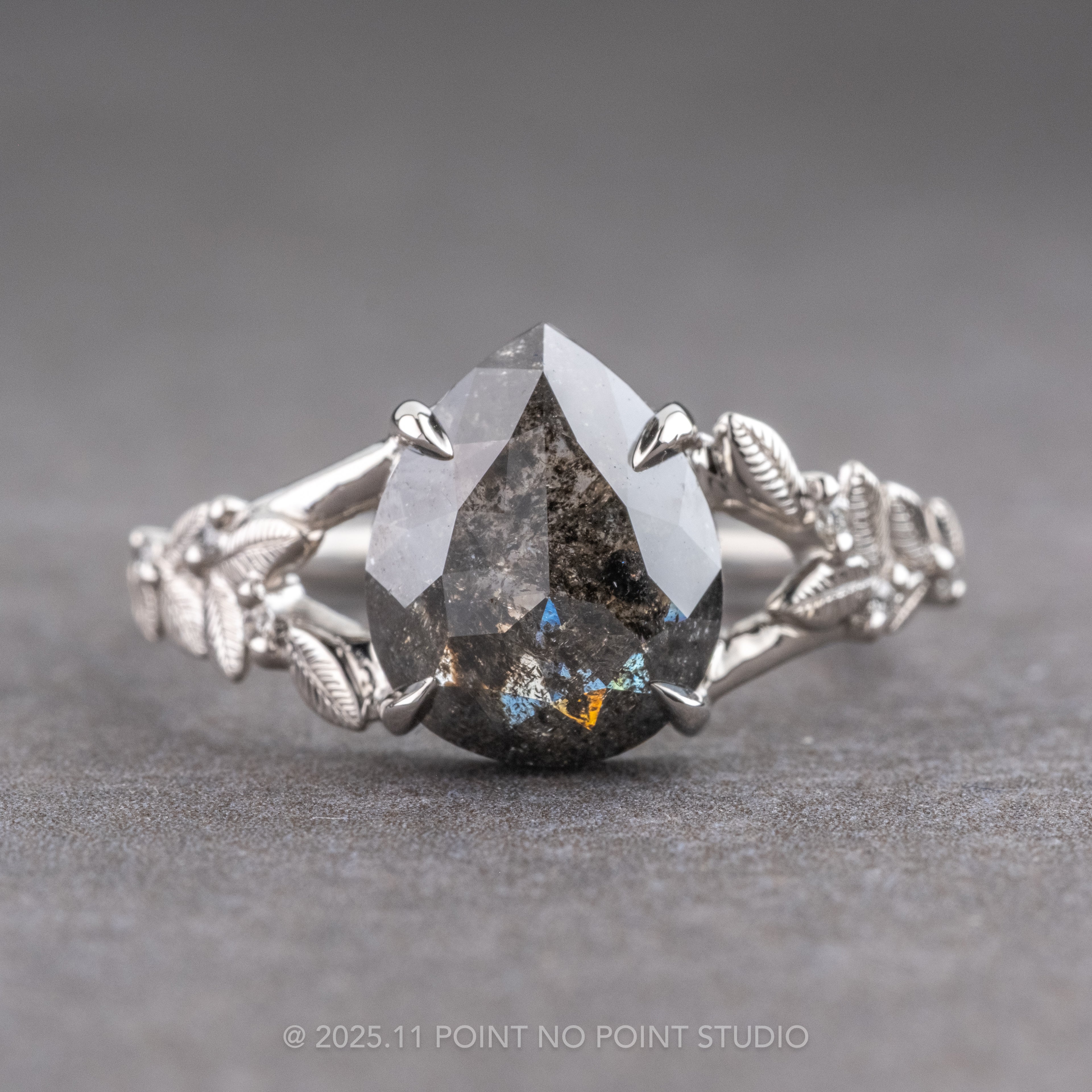 2.31 Carat Black Speckled Pear Diamond Engagement Ring, Magnolia Setting, Platinum