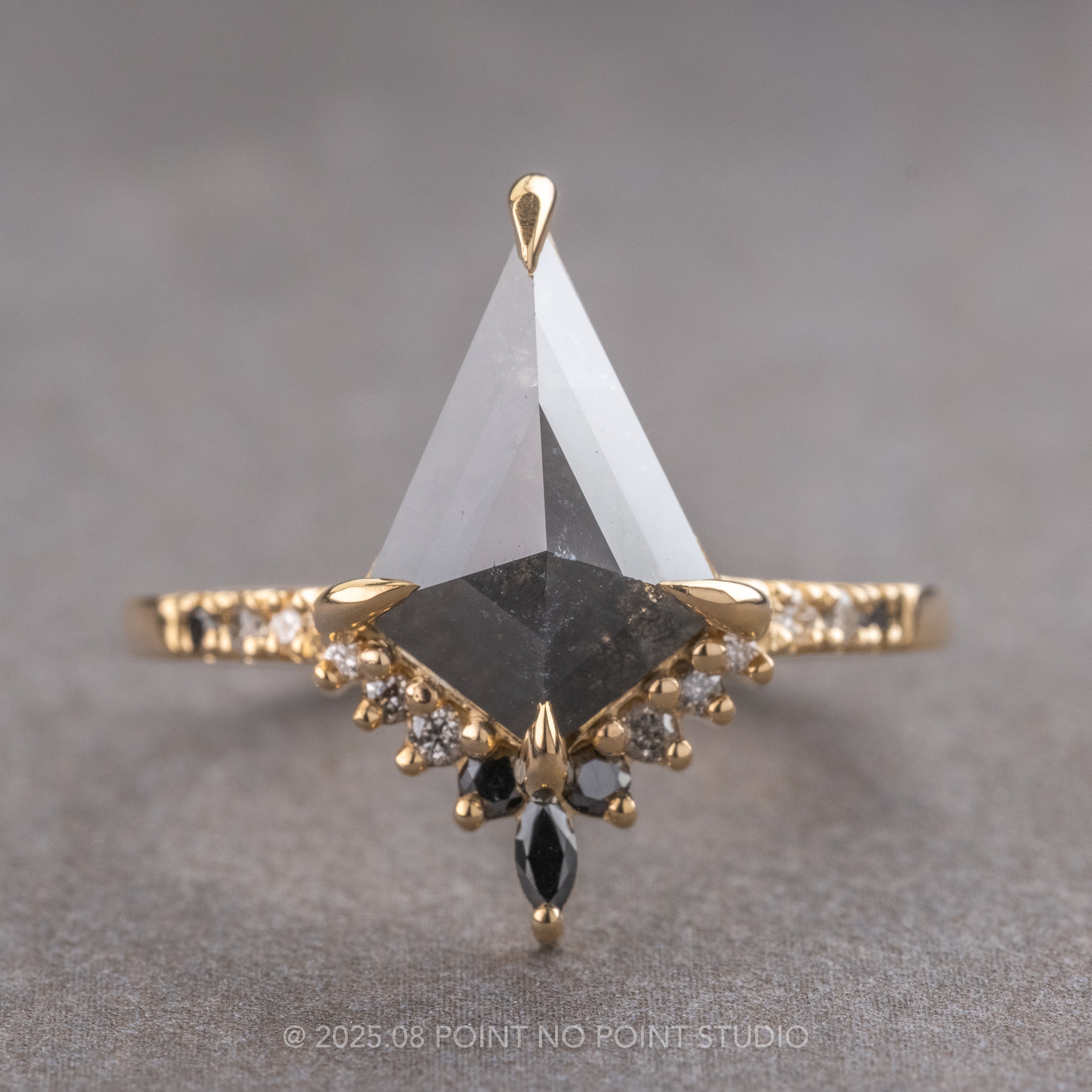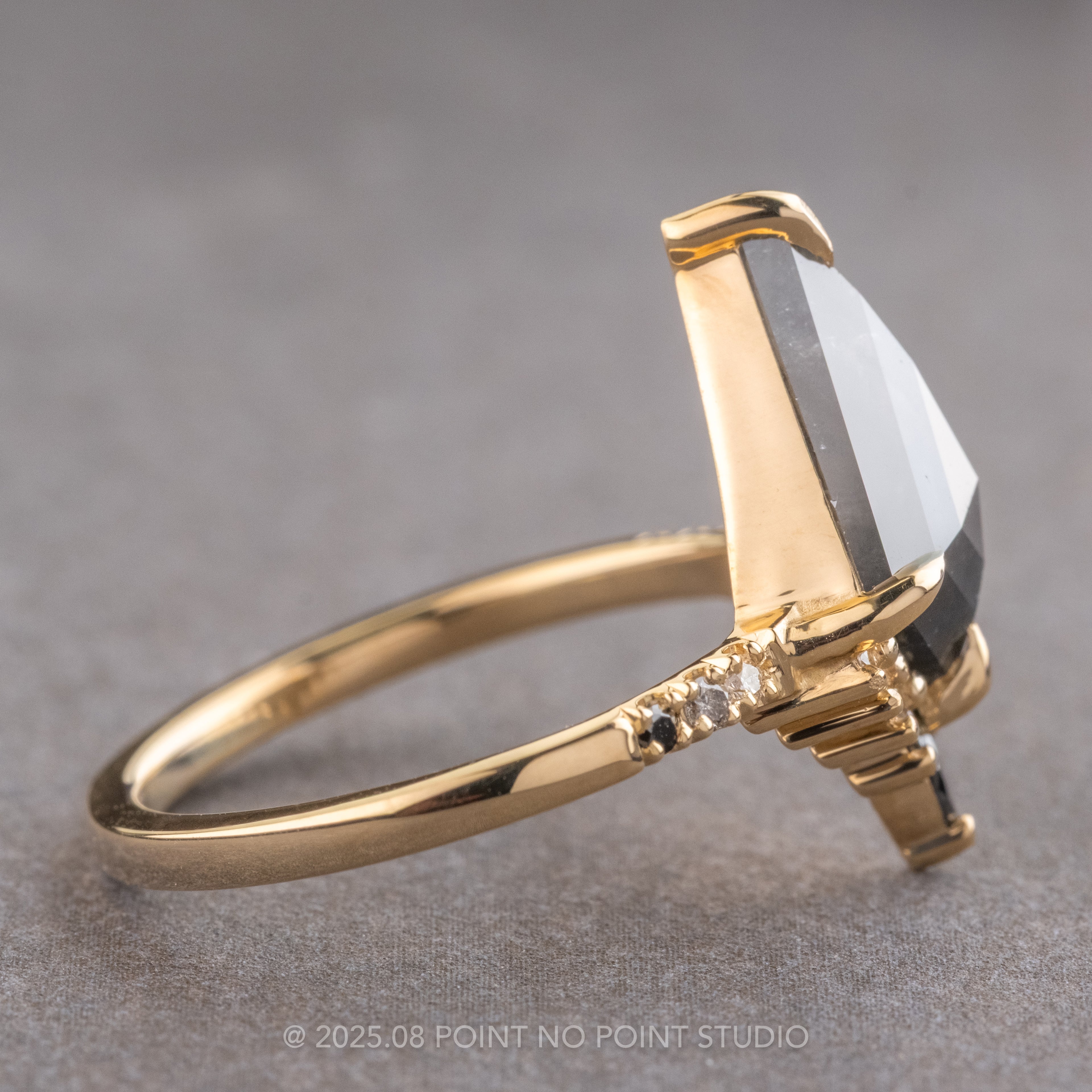 2.59 Carat Black Speckled Kite Diamond Engagement Ring, Ombre Avaline Setting, 14K Yellow Gold