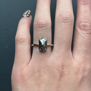 3.15 Carat Black Speckled Hexagon Diamond Engagement Ring, Jane Setting, 14k Yellow Gold