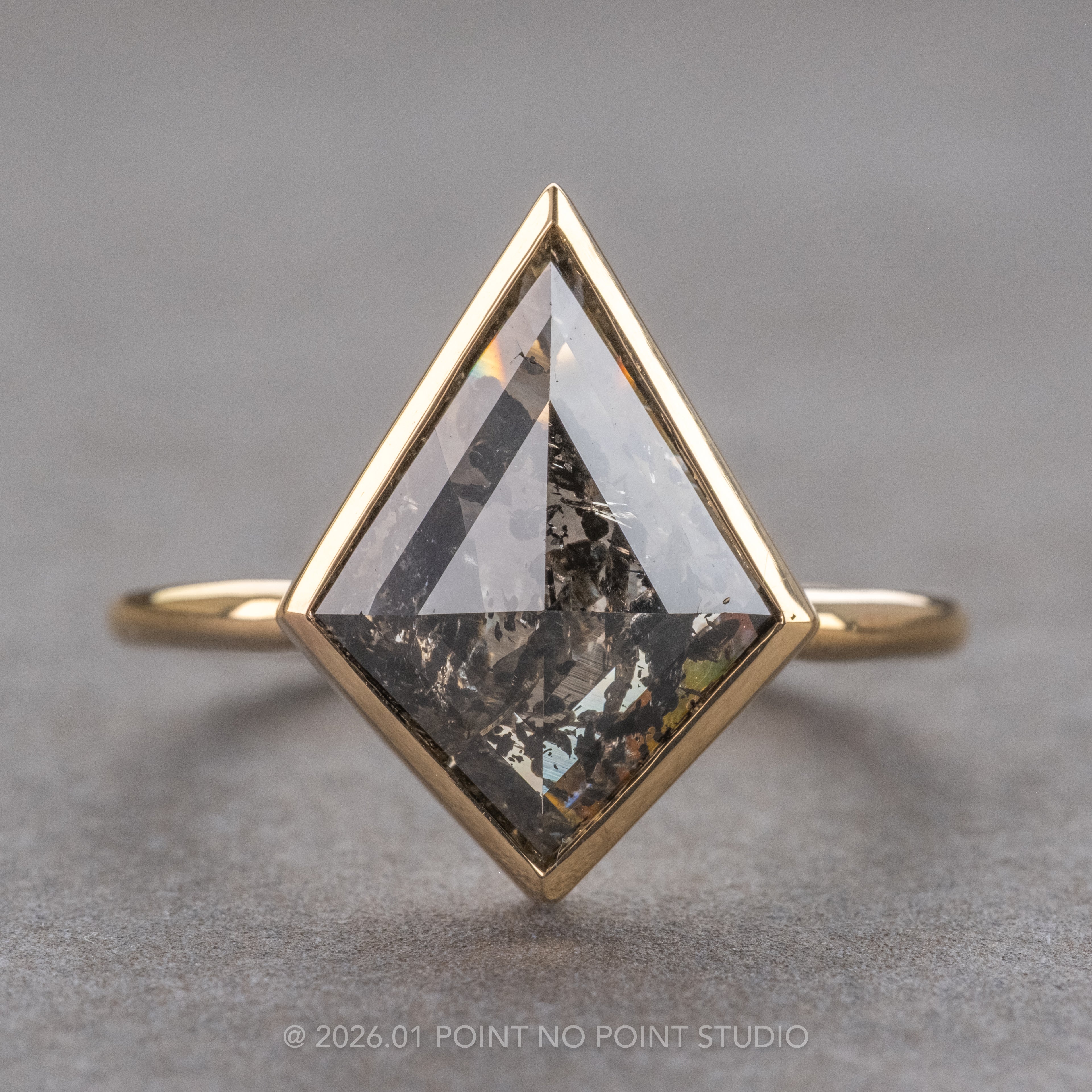 4.05 Carat Salt and Pepper Kite Diamond Engagement Ring, Bezel Jane Setting, 14K Yellow Gold