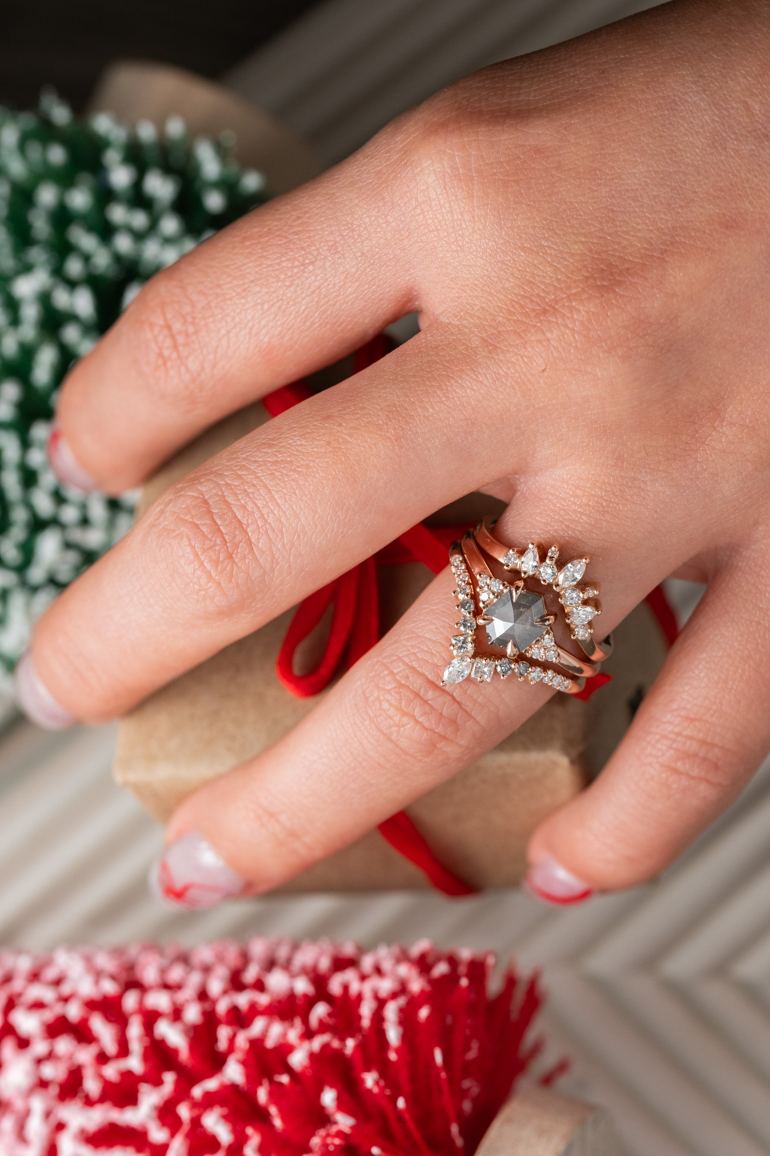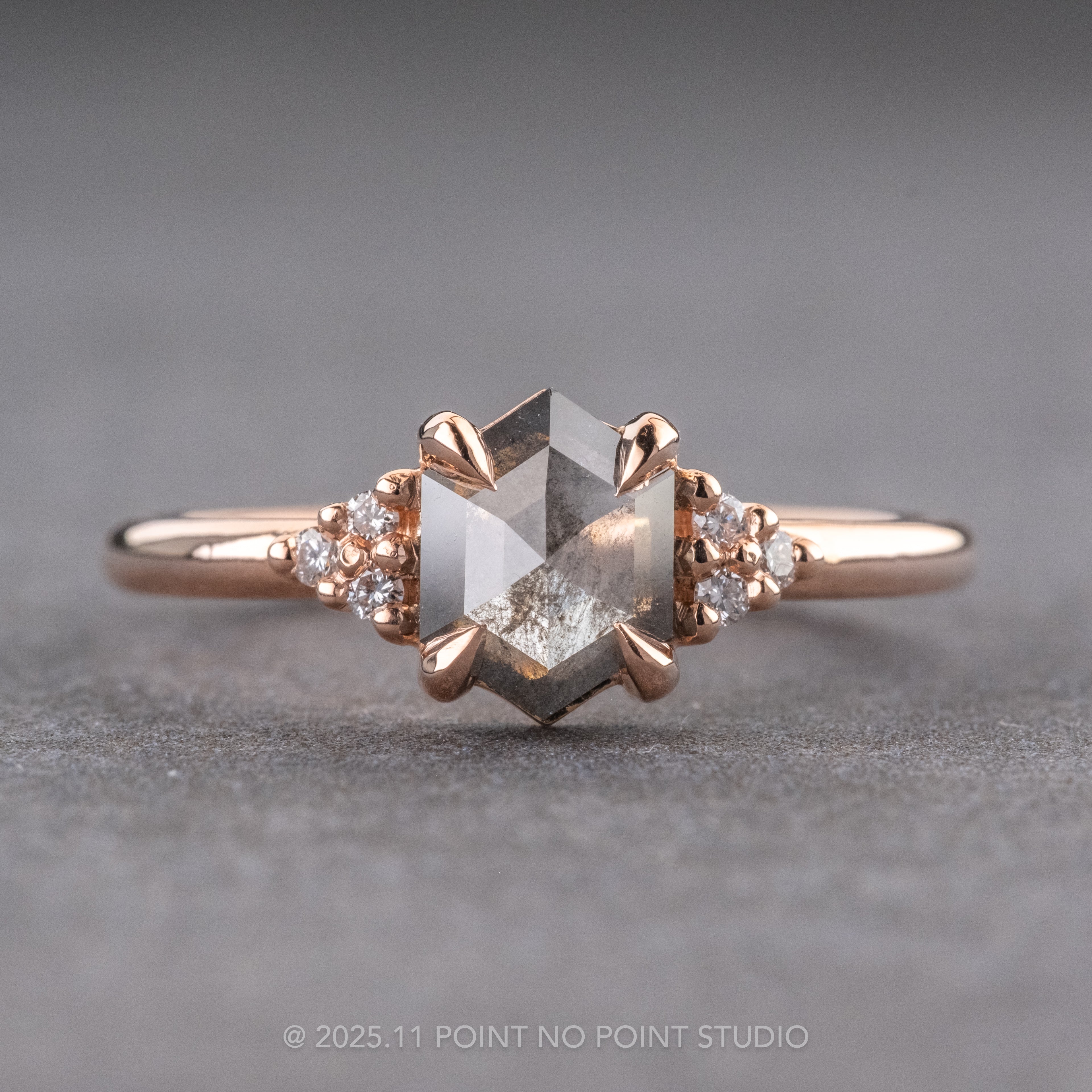 .82 Carat Salt and Pepper Hexagon Diamond Engagement Ring, Quinn Setting, 14K Rose Gold