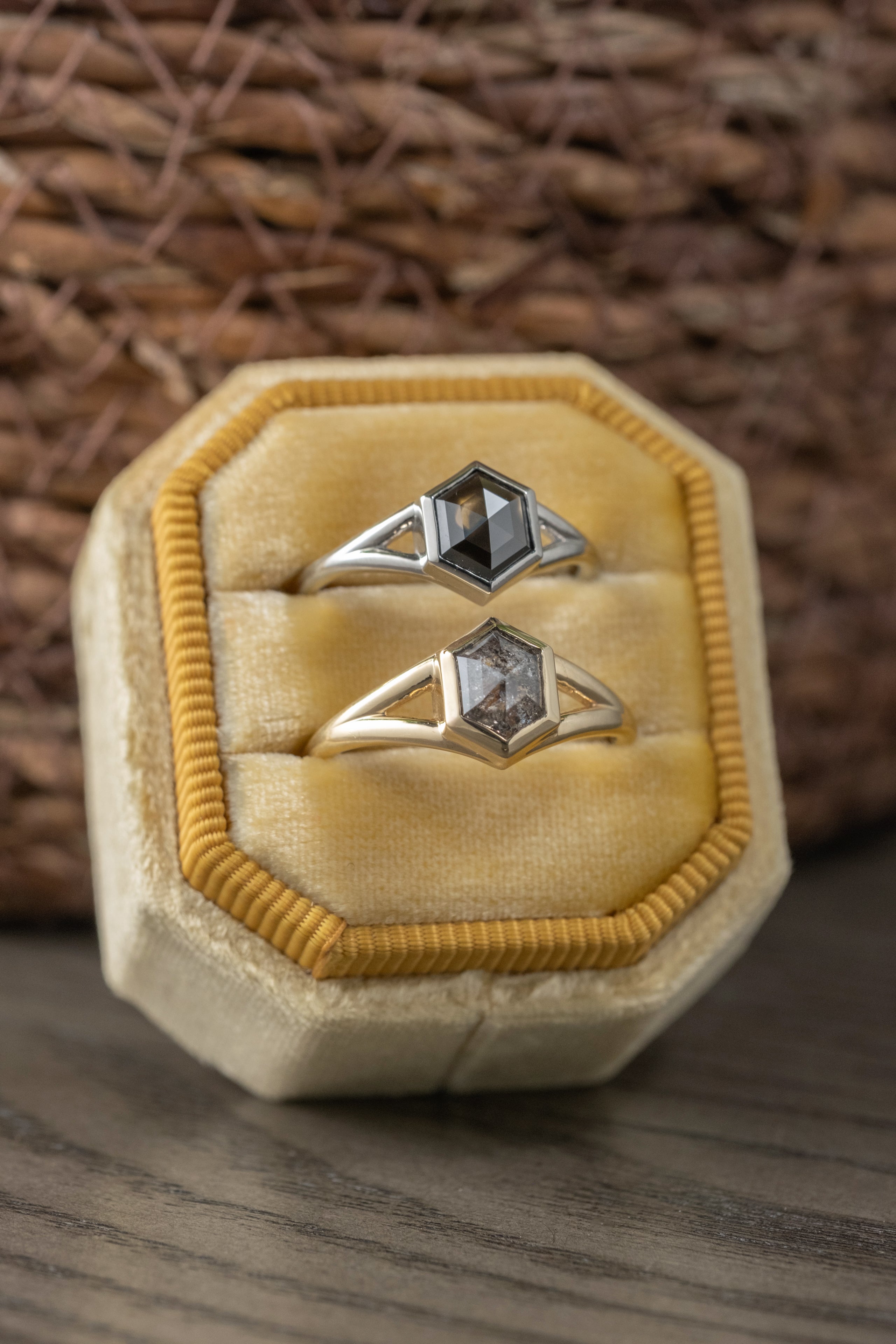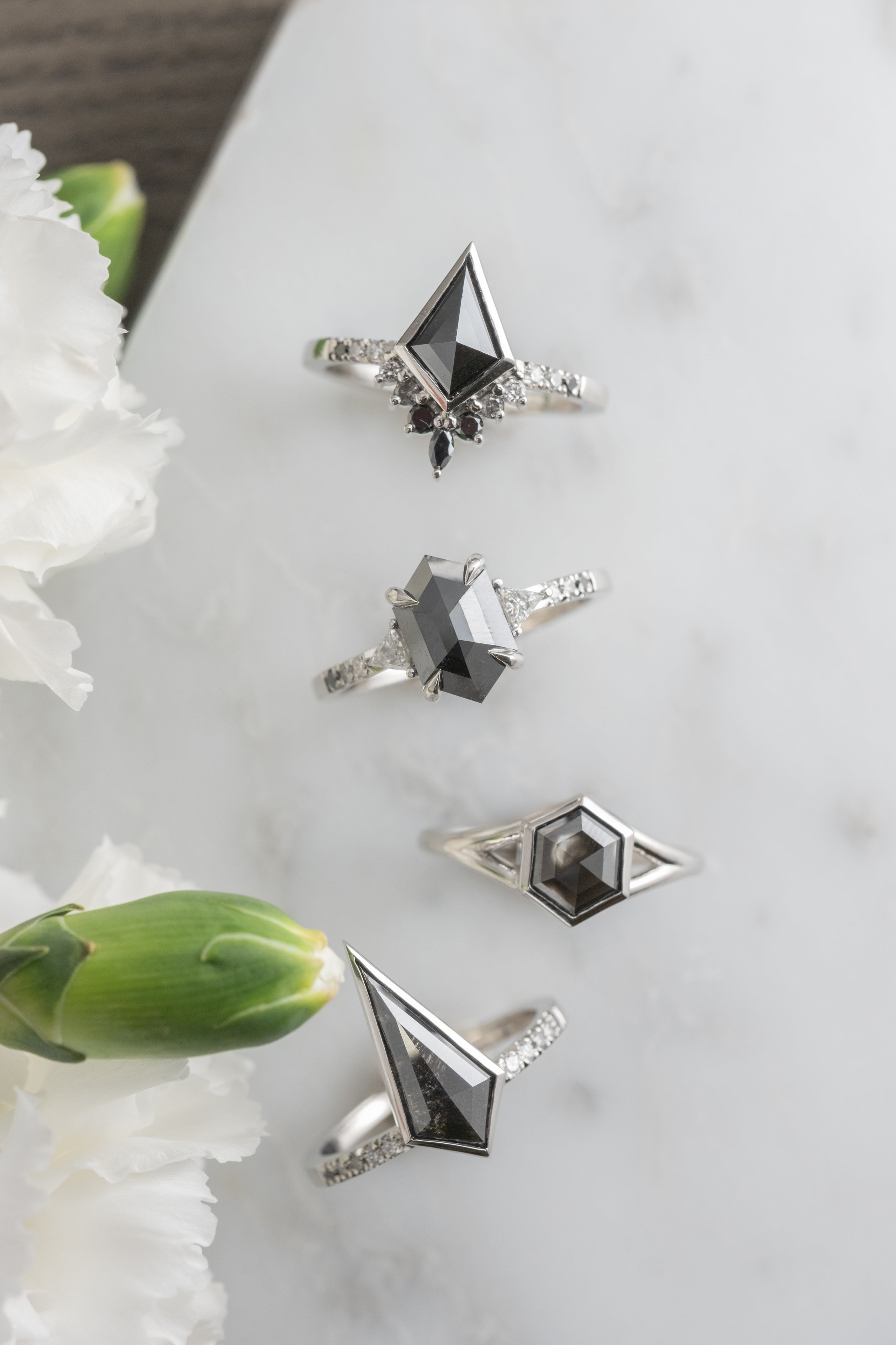 Black Hexagon Diamond Engagement Ring