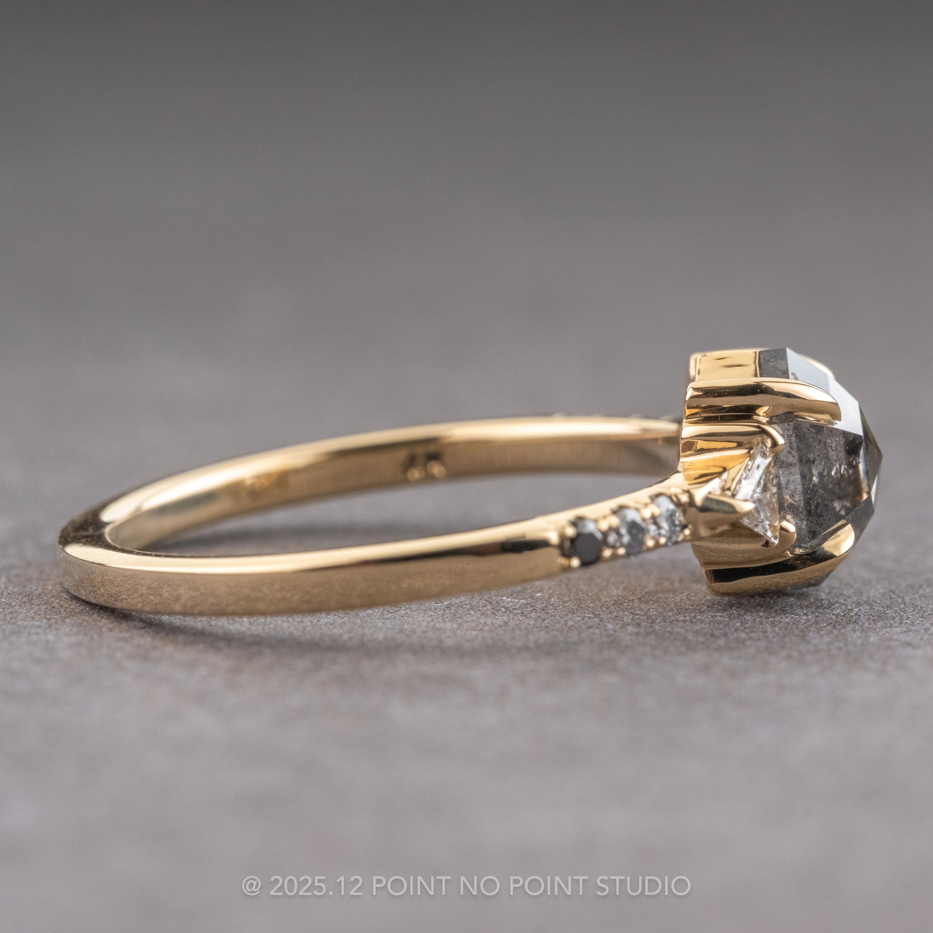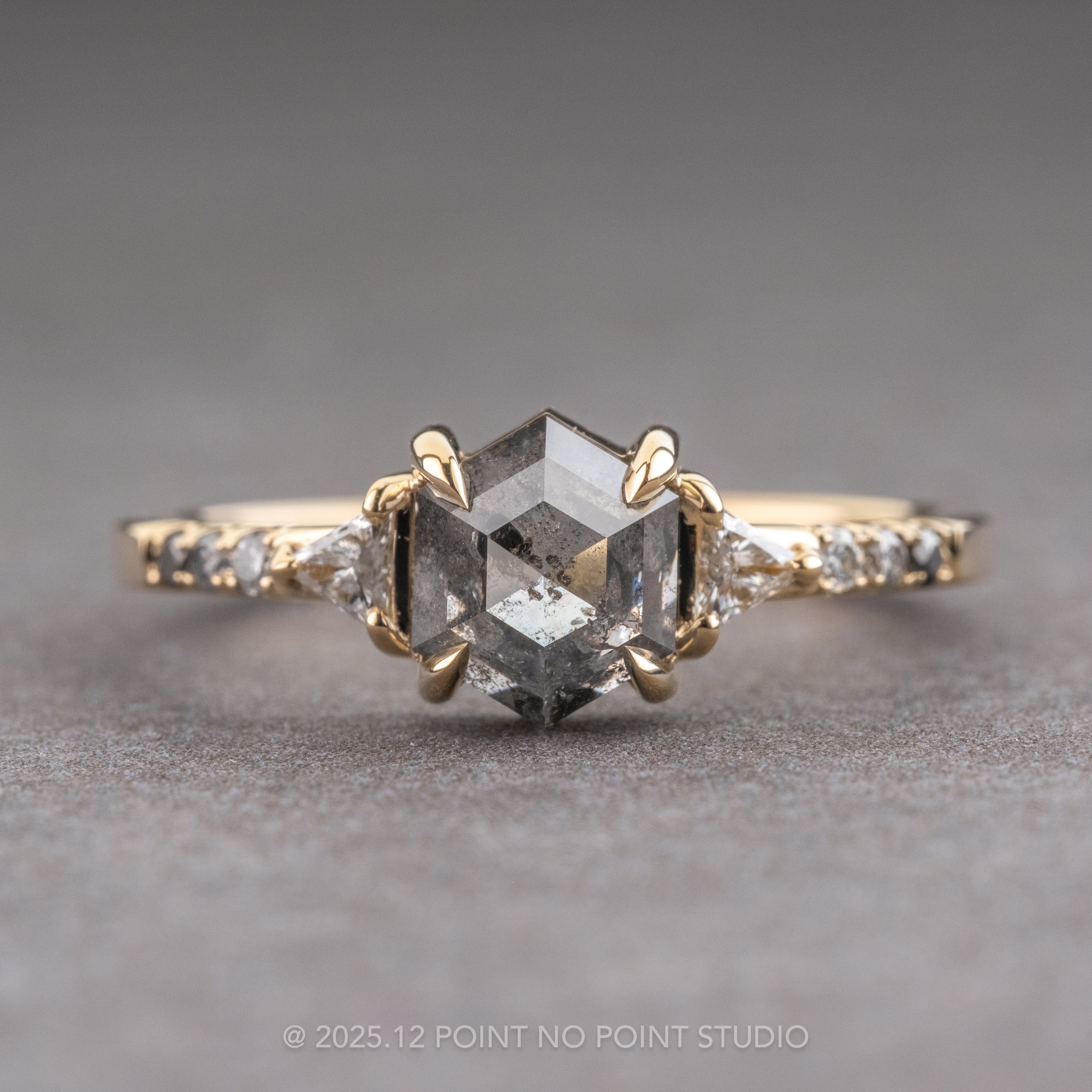 1.31 Carat Salt and Pepper Hexagon Diamond Engagement Ring, Ombre Eliza Setting, 14K Yellow Gold