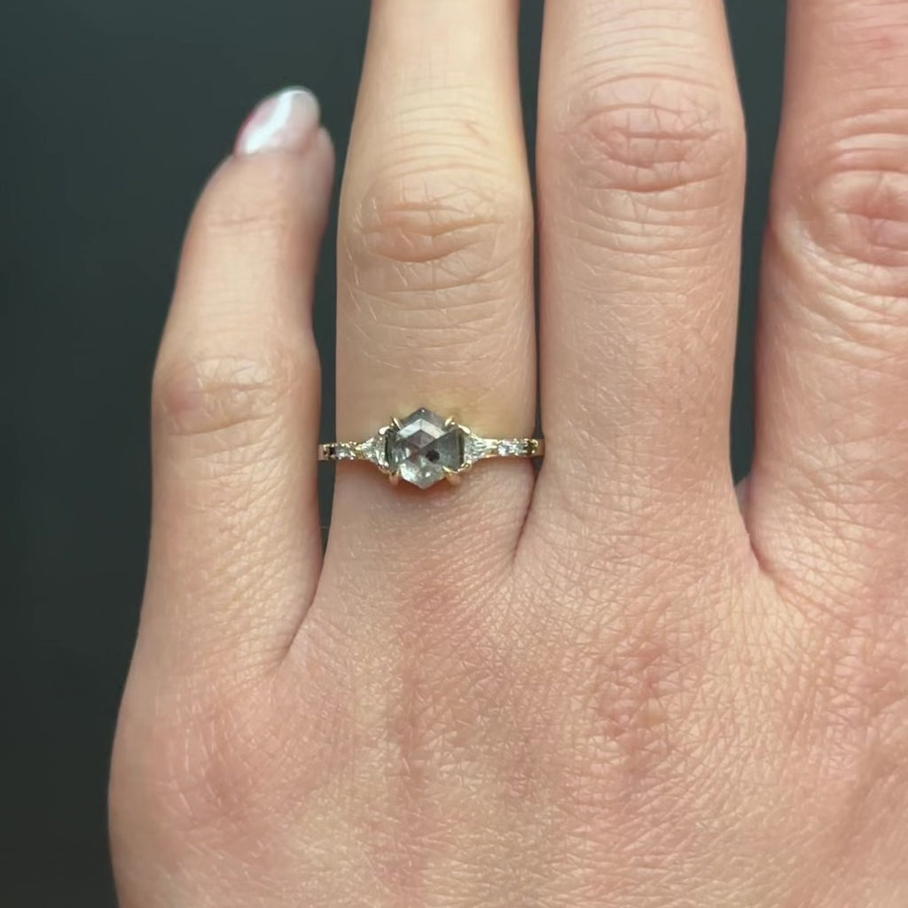 Salt and Pepper Hexagon Diamond Engagement Ring