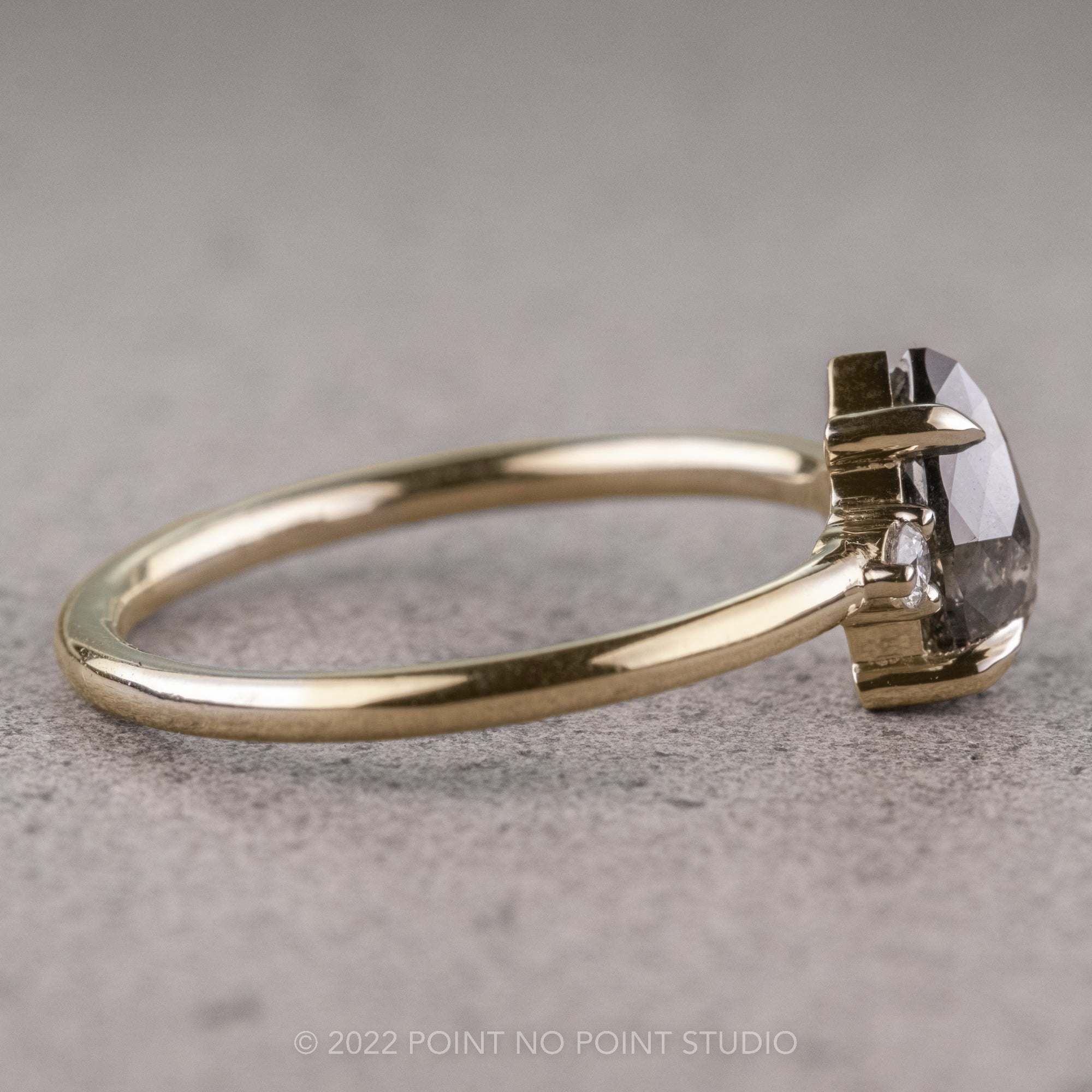 1.32 Carat Salt and Pepper Pear Diamond Engagement Ring, Zoe Setting, 14K Yellow Gold