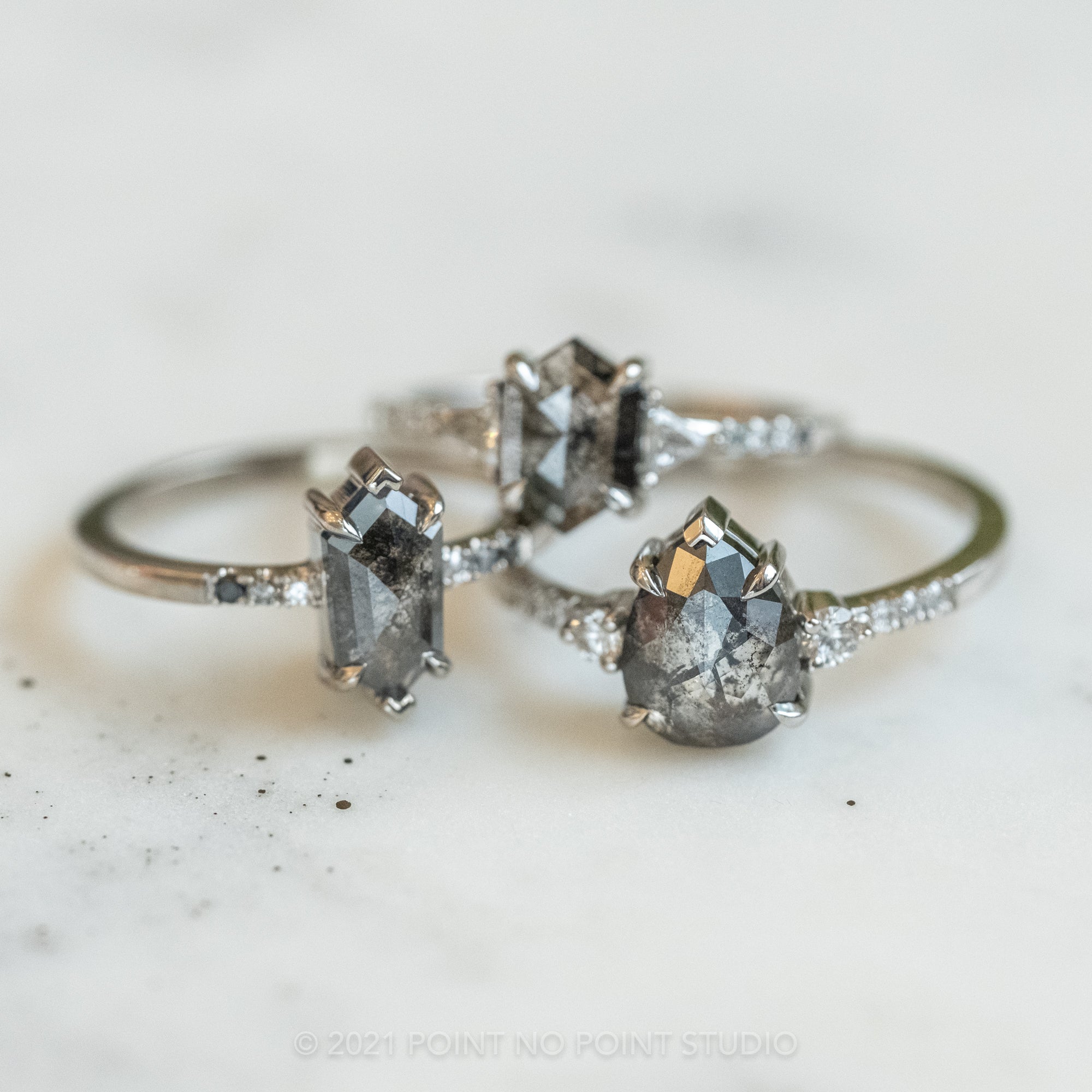 Salt and Pepper Hexagon Diamond Engagement Ring
