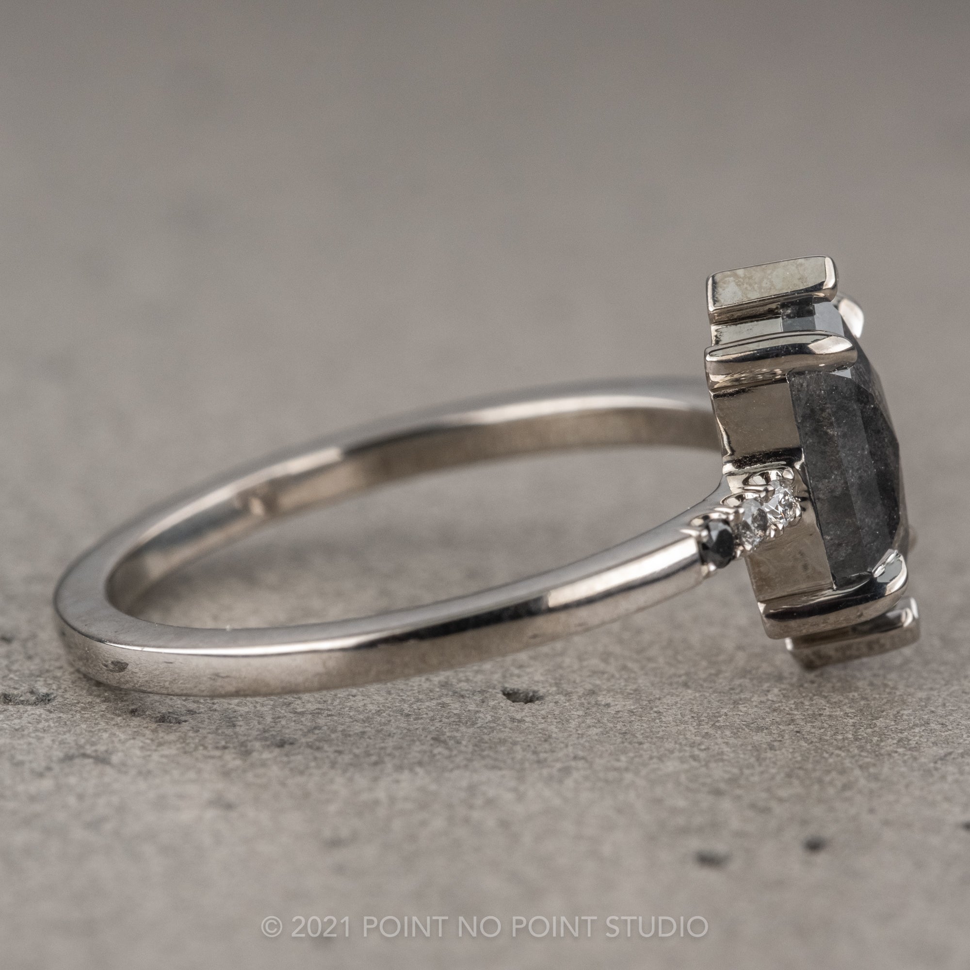 1.37 Carat Salt and Pepper Hexagon Diamond Engagement Ring, Ombre Sirena Setting, 14K White Gold