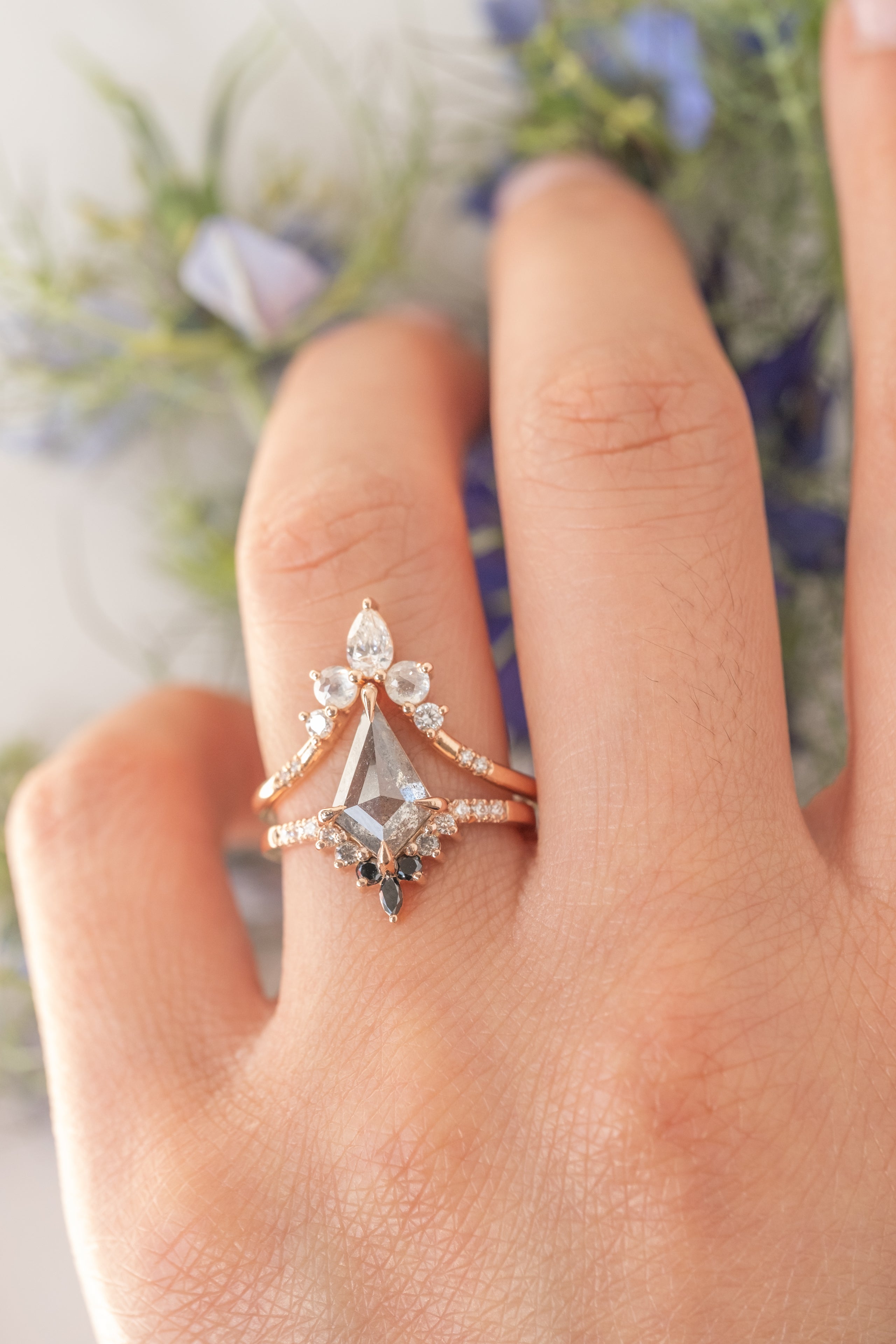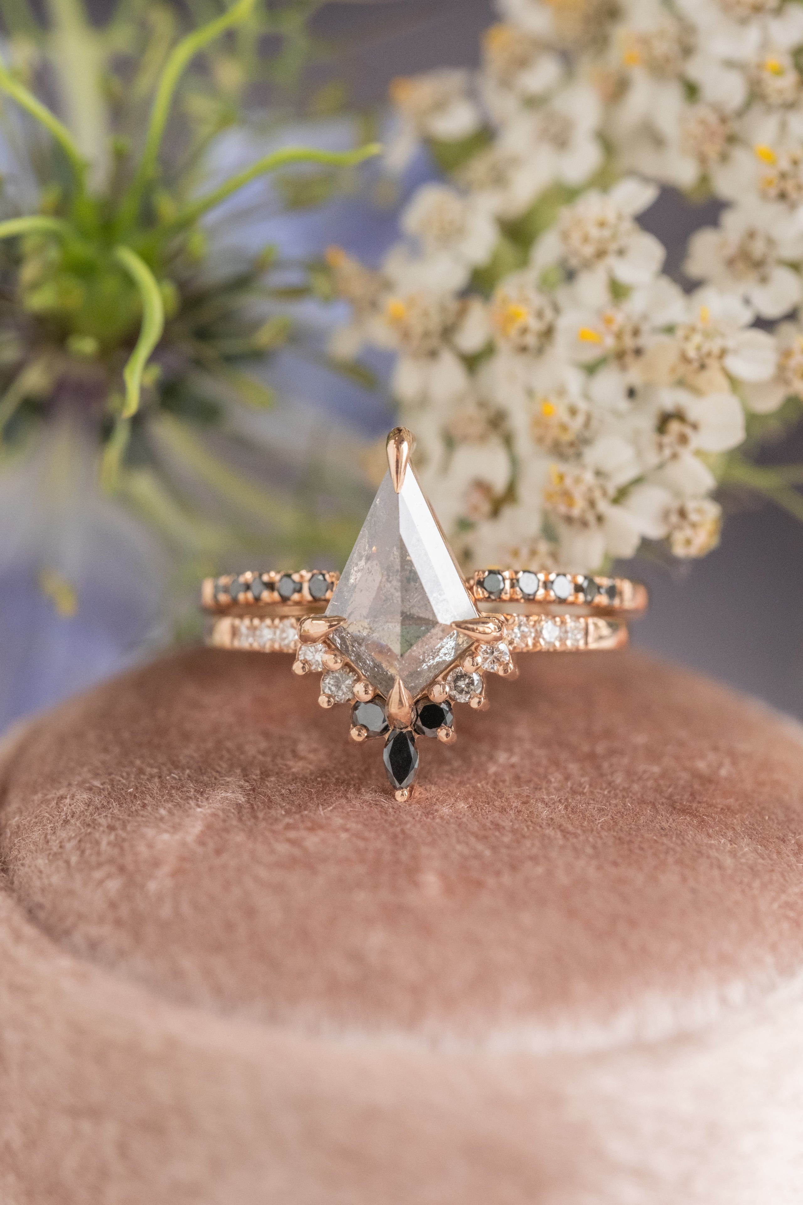 Salt and Pepper Kite Diamond Engagement Ring