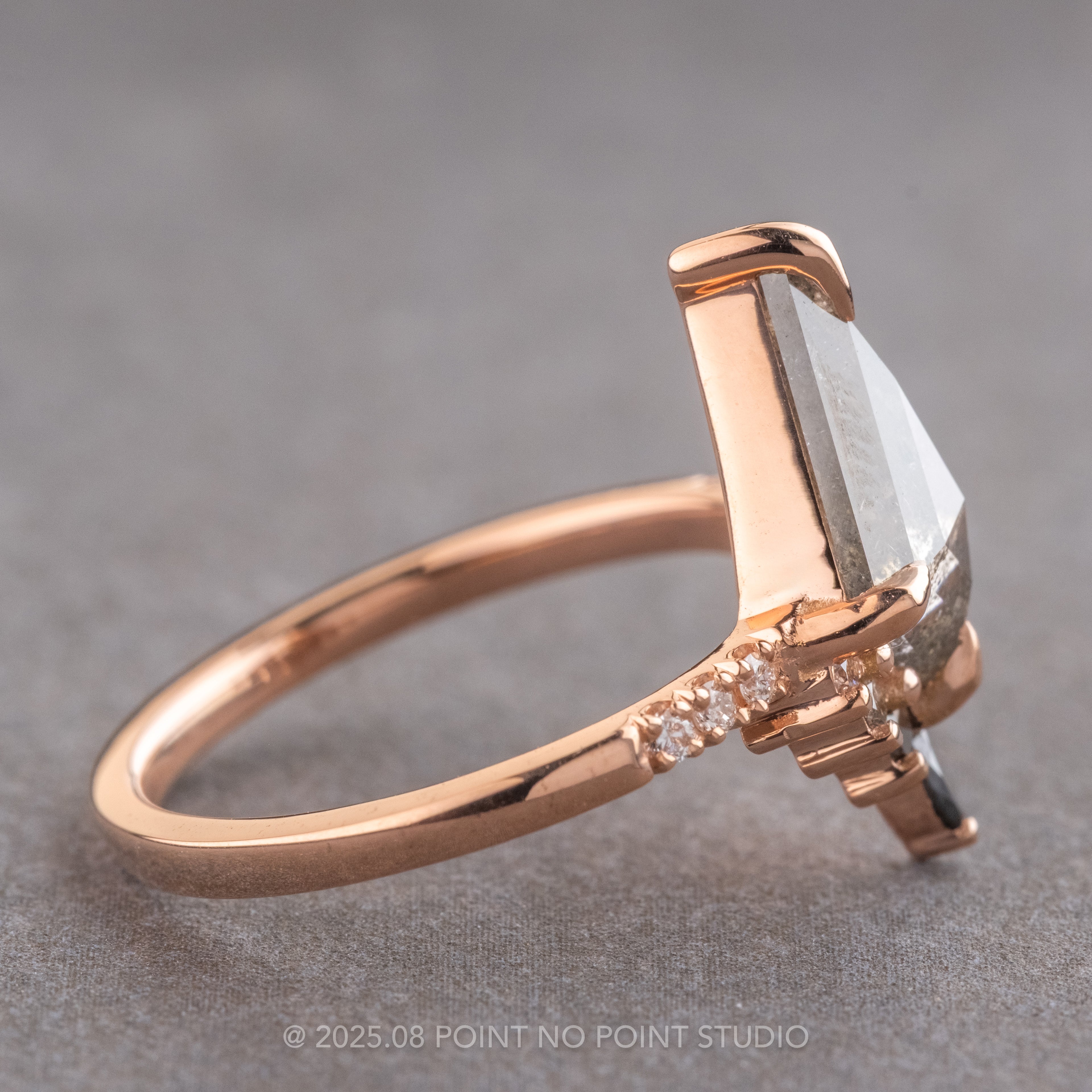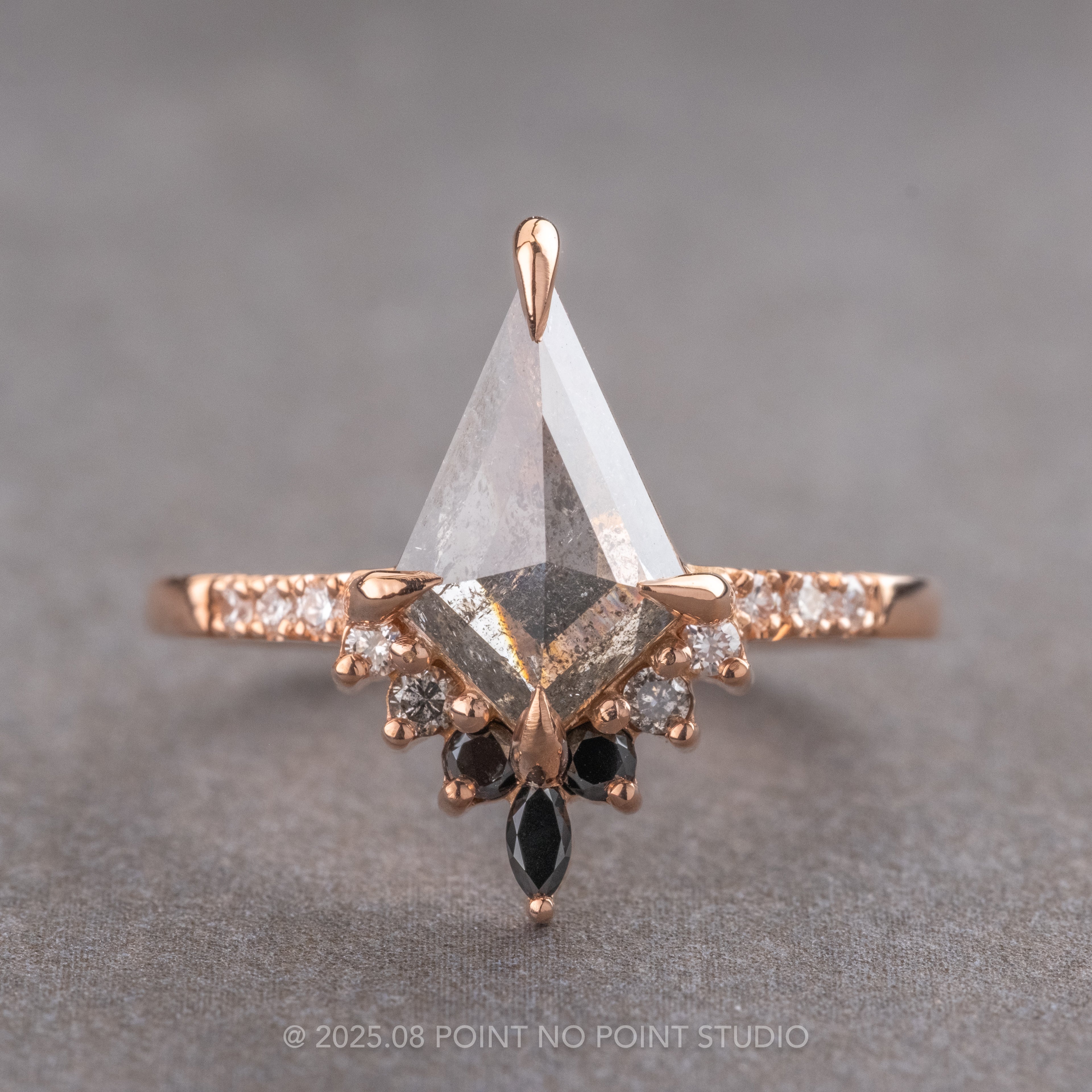 1.70 Carat Salt and Pepper Kite Diamond Engagement Ring, Ombre Avaline Setting, 14K Rose Gold
