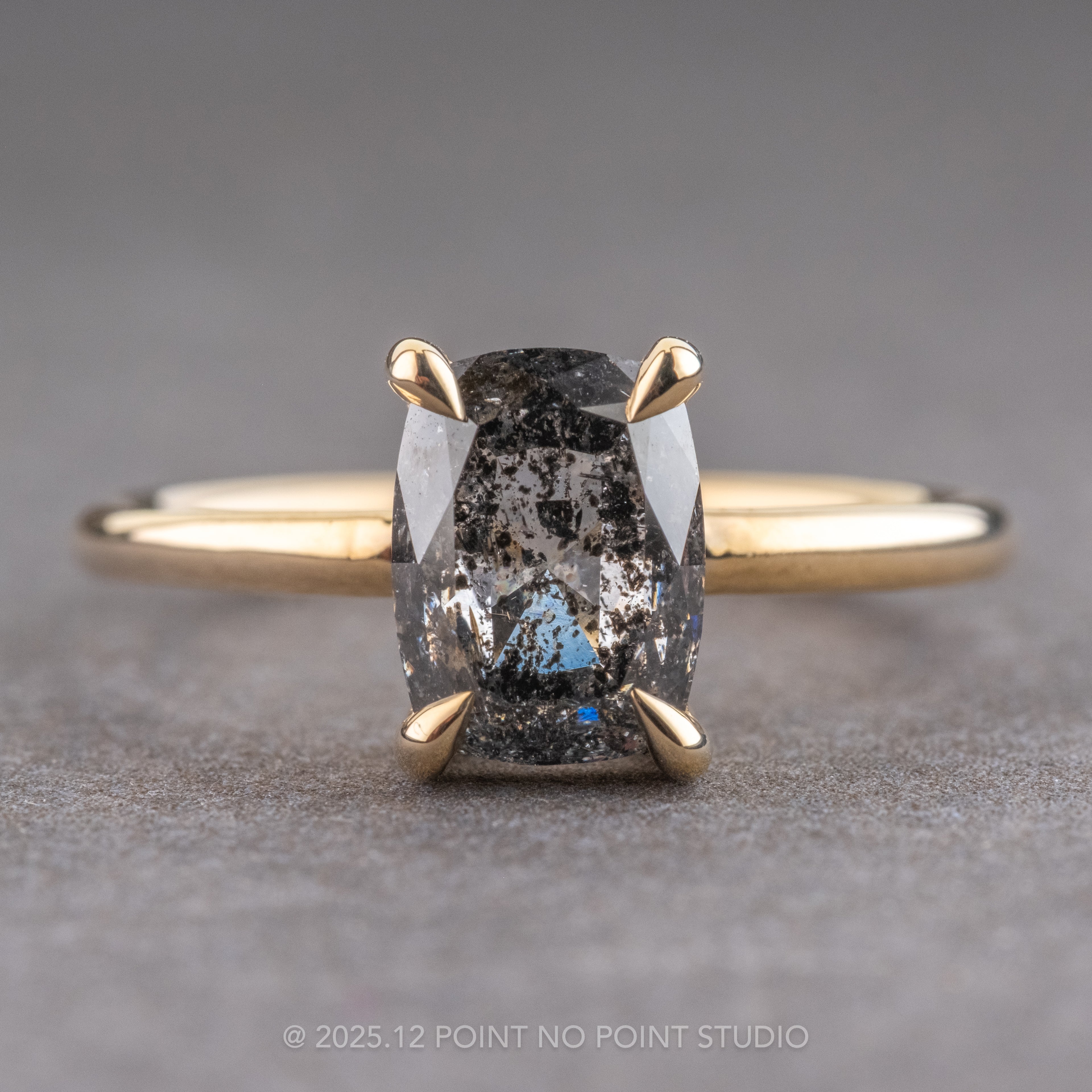 1.74 Carat Salt and Pepper Elongated Cushion Diamond Engagement Ring, Basket Jane Setting, 14K Yellow Gold