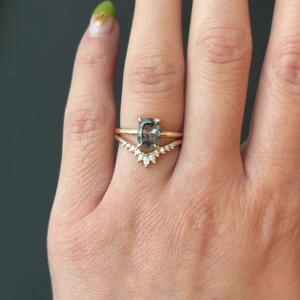 Salt and Pepper Elongated Cushion Diamond Engagement Ring