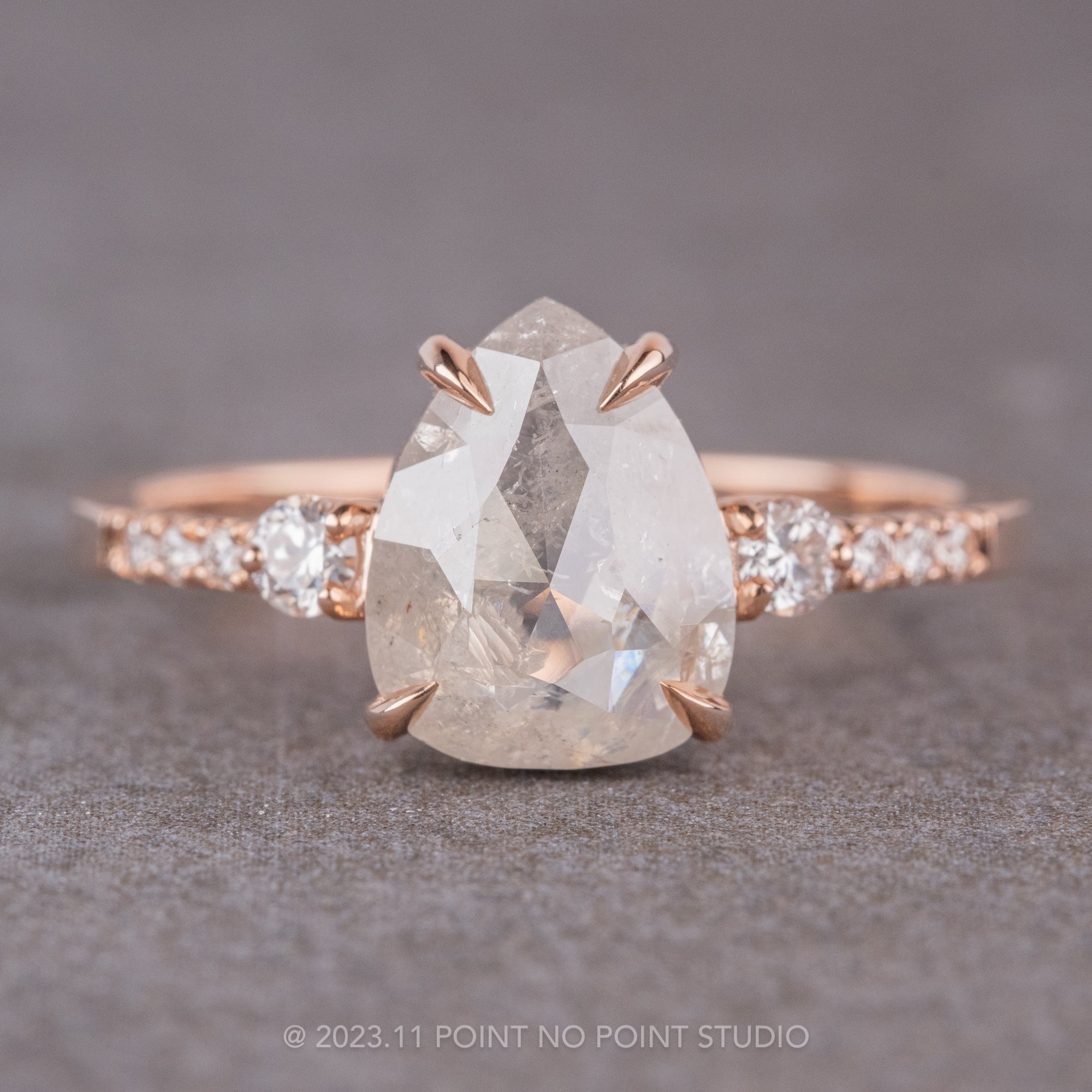 1.97 Carat Icy White Pear Diamond Engagement Ring, Eliza Setting, 14K Rose Gold