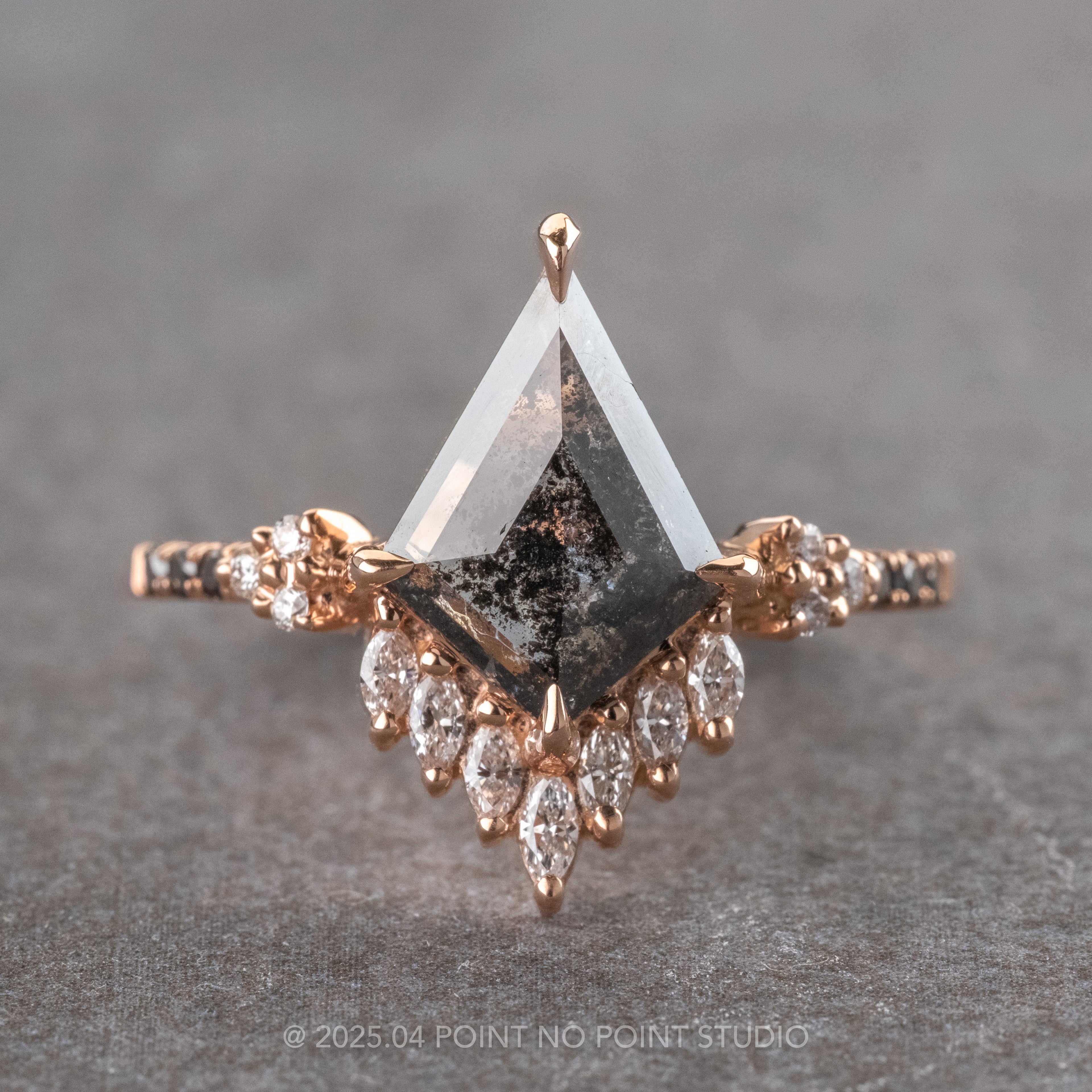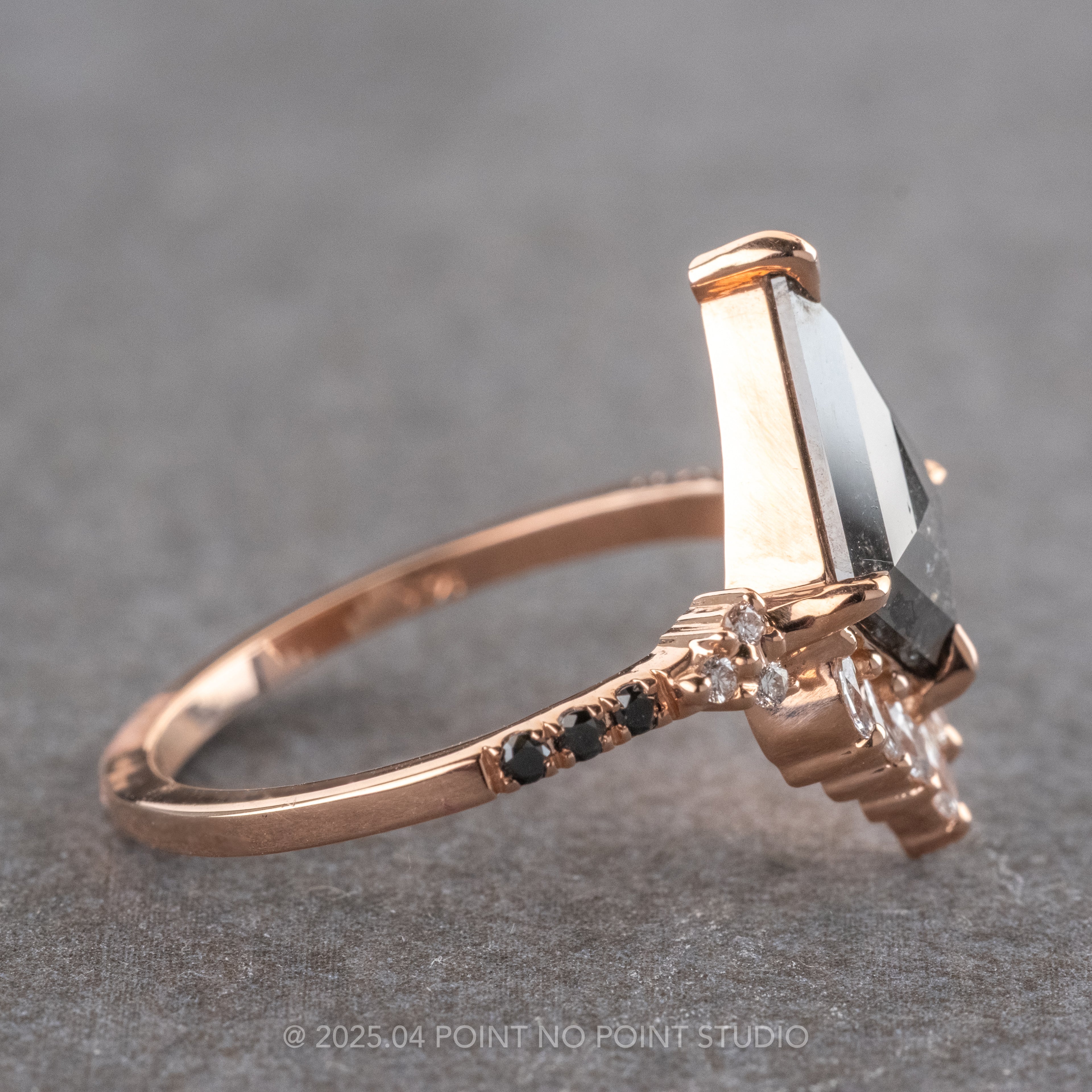 2.13 Carat Black Speckled Kite Diamond Engagement Ring, Ombre Camila Setting, 14k Rose Gold