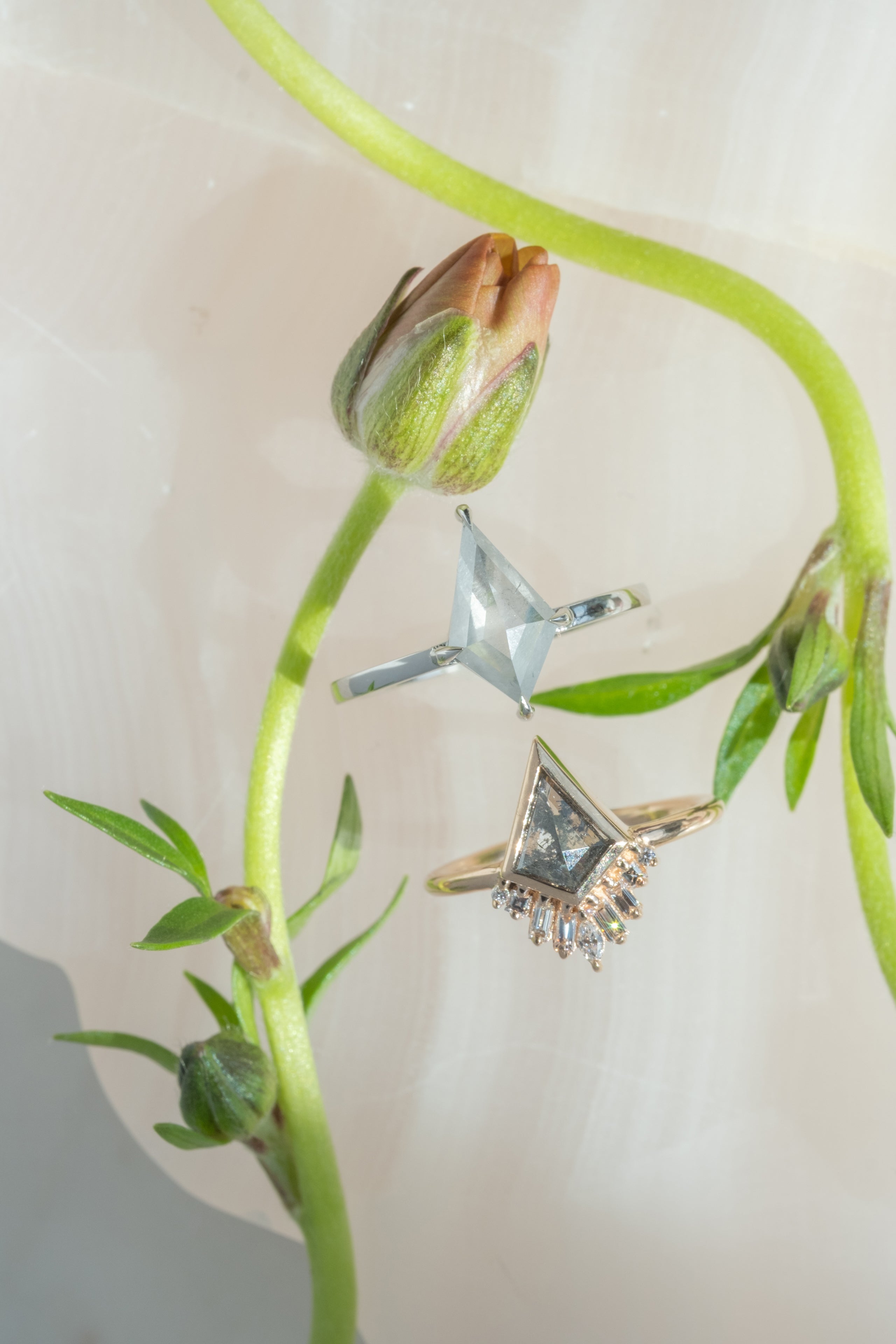 2.13 Carat Icy Grey Kite Diamond Engagement Ring, Jane Setting, Platinum