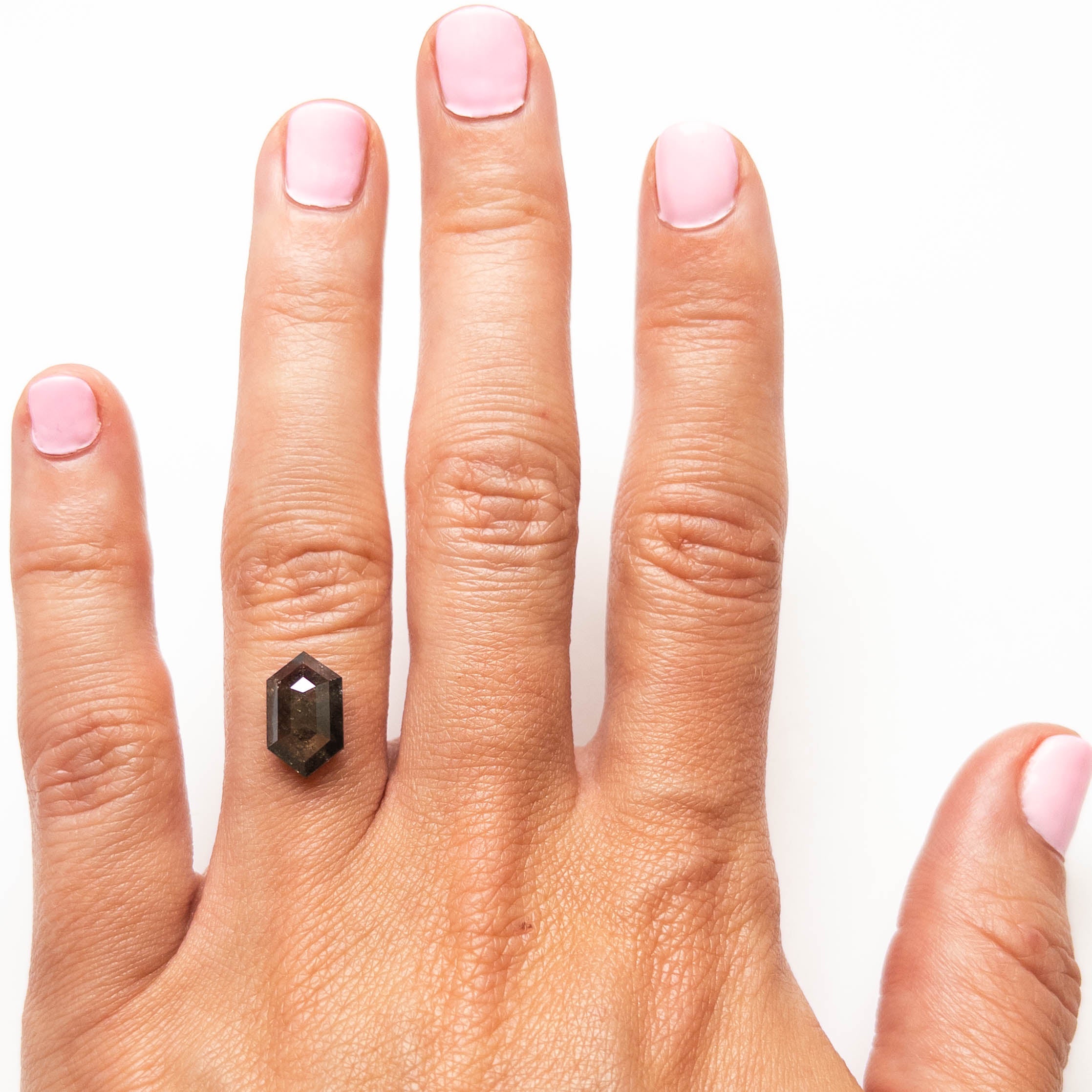 3.07 Carat Smoky Black Rose Cut Hexagon Diamond