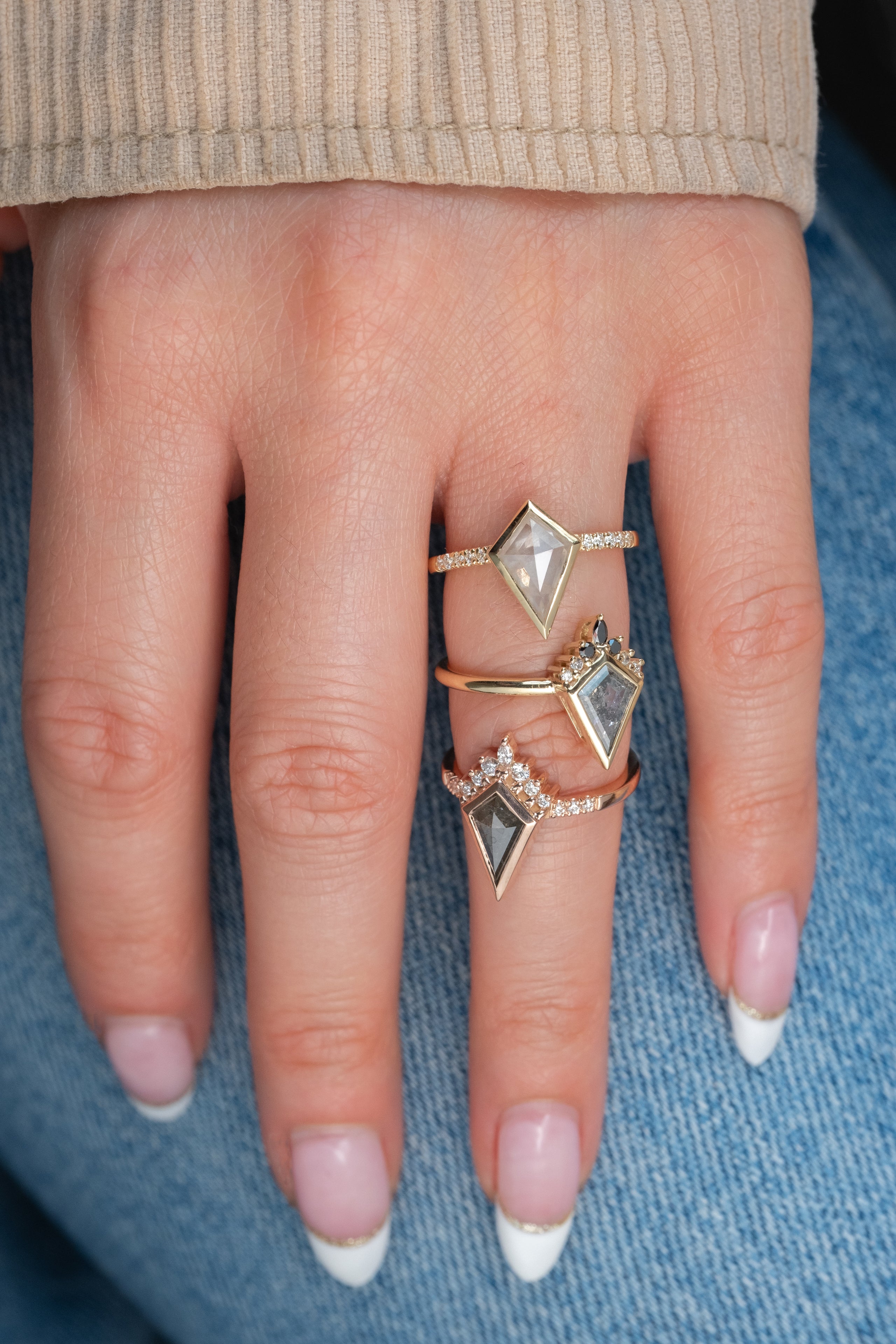 Salt and Pepper Kite Diamond Engagement Ring