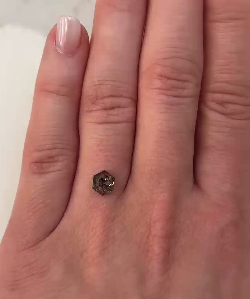 1.28 Carat Salt and Pepper Double Cut Hexagon Diamond