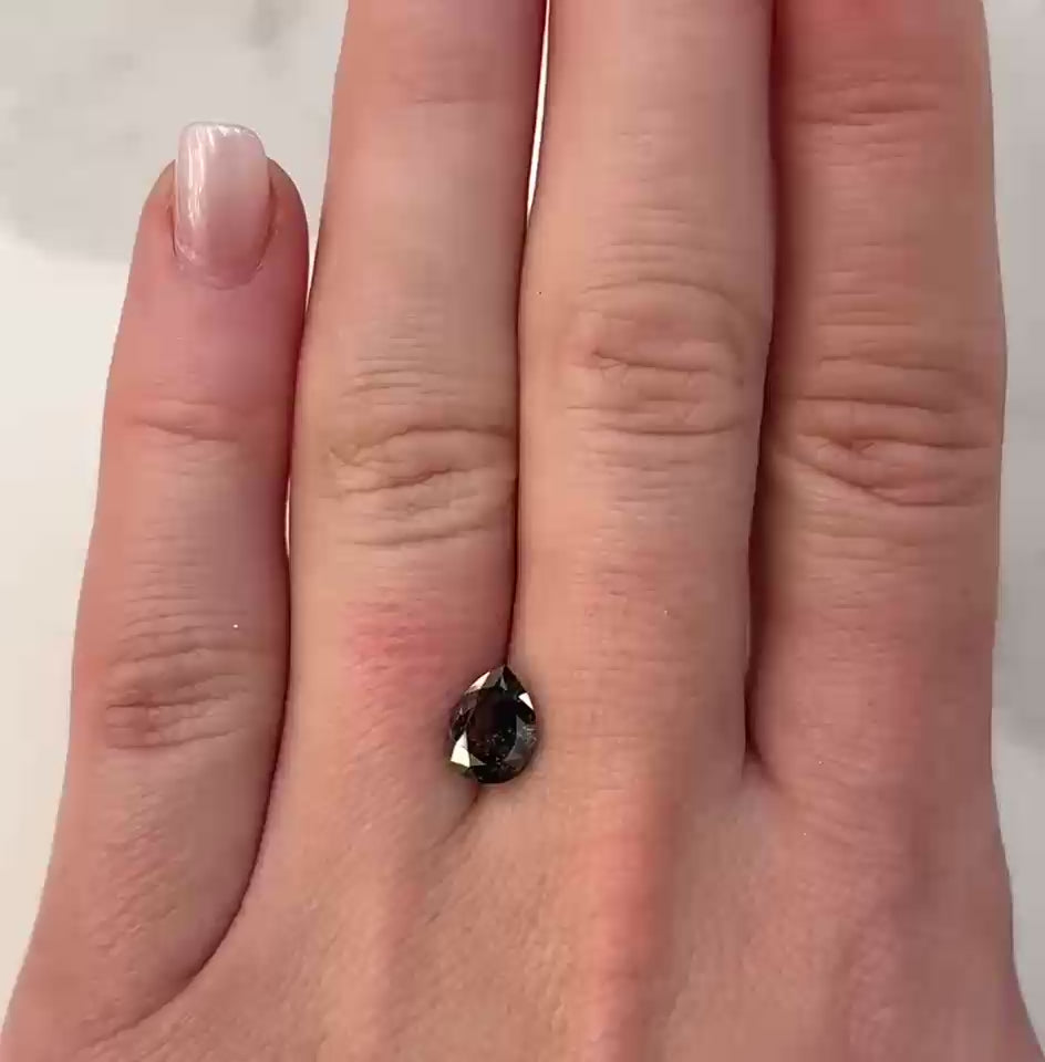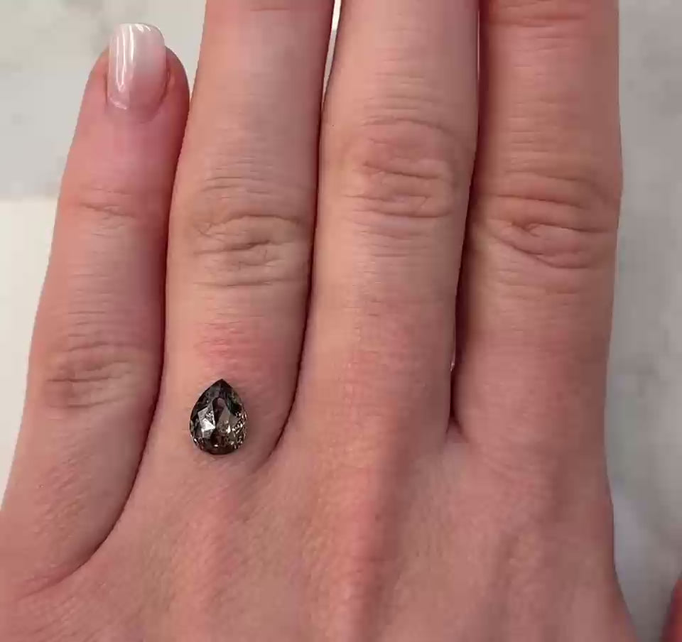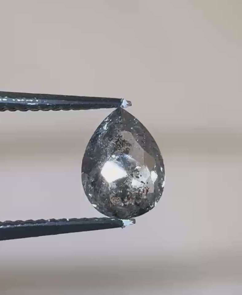 1.42 Carat Black Speckled Double Cut Pear Diamond