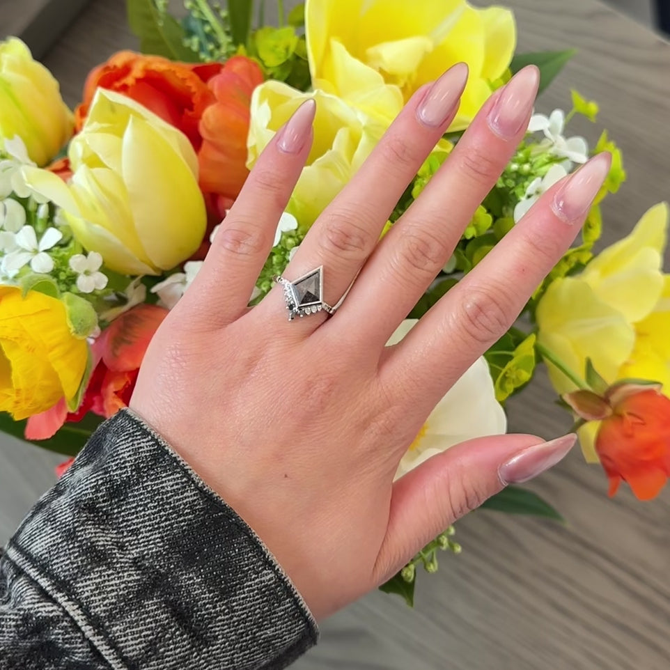 1.71 Carat Black Speckled Kite Diamond Engagement Ring, Bezel Ombre Avaline Setting, Platinum