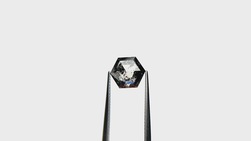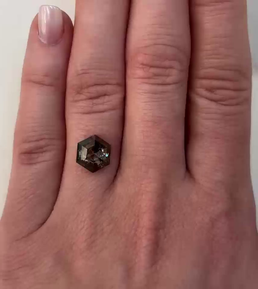 3.62 Carat Black Speckled Rose Cut Hexagon Diamond