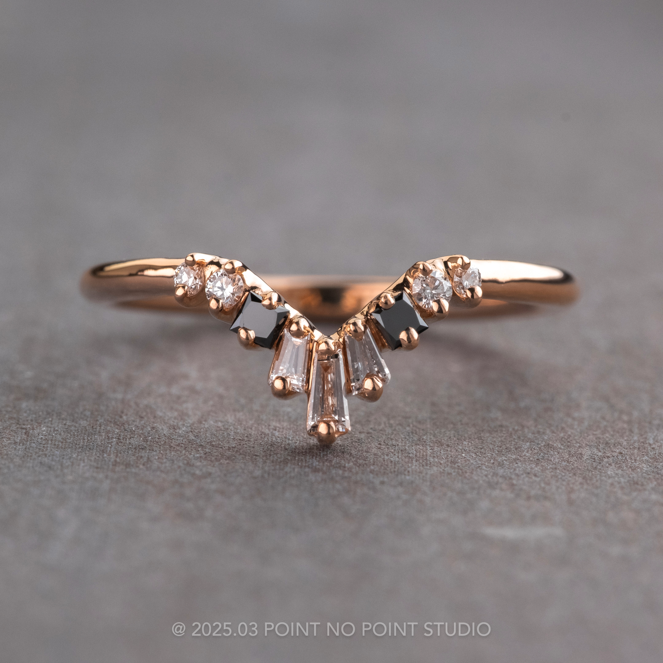 Baguette Diamond V Wedding Band, Small Ombre Wren Setting, 14K Peach Gold