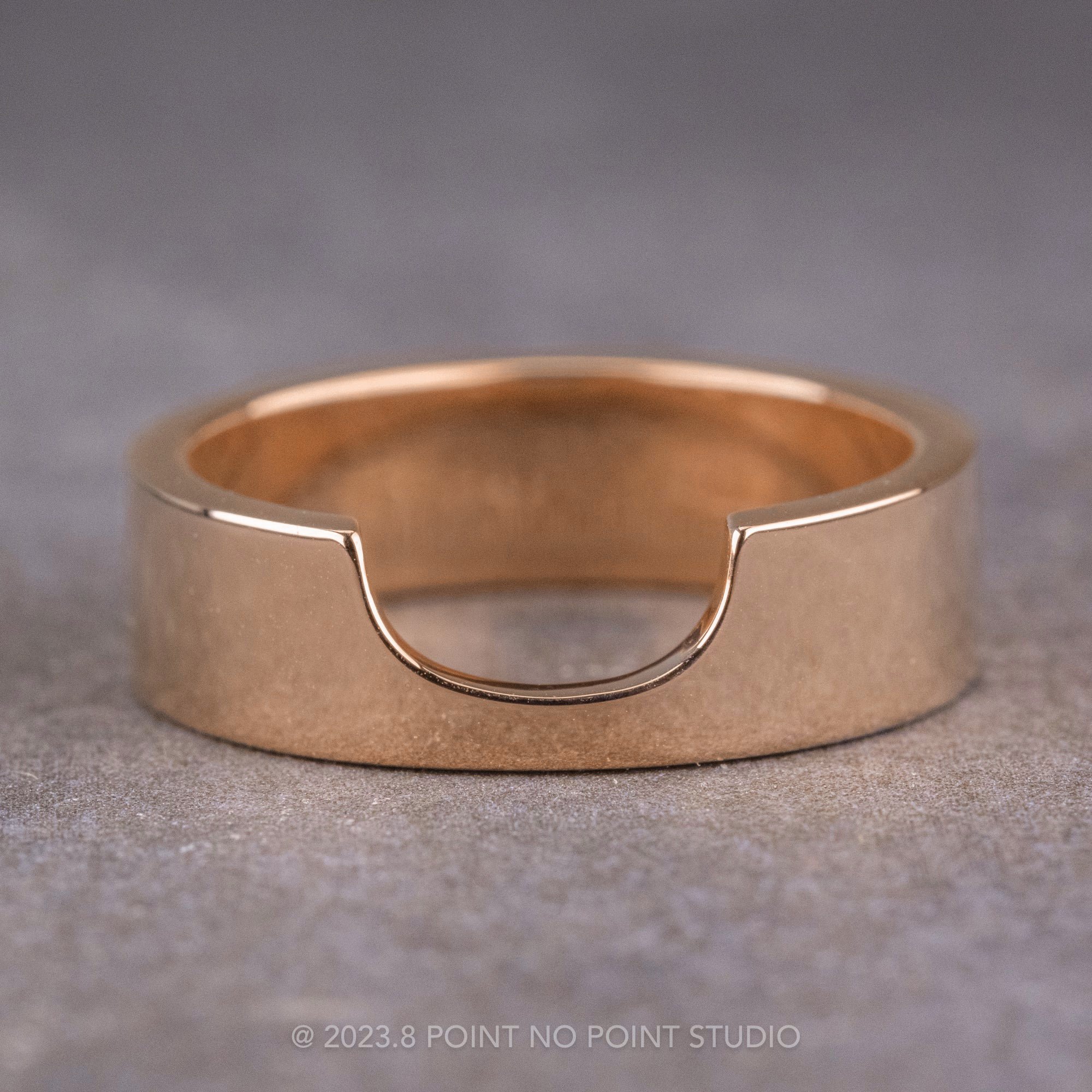 Ellipse Setting, 6mm 14k Peach Gold Wedding Band, Polished Finish