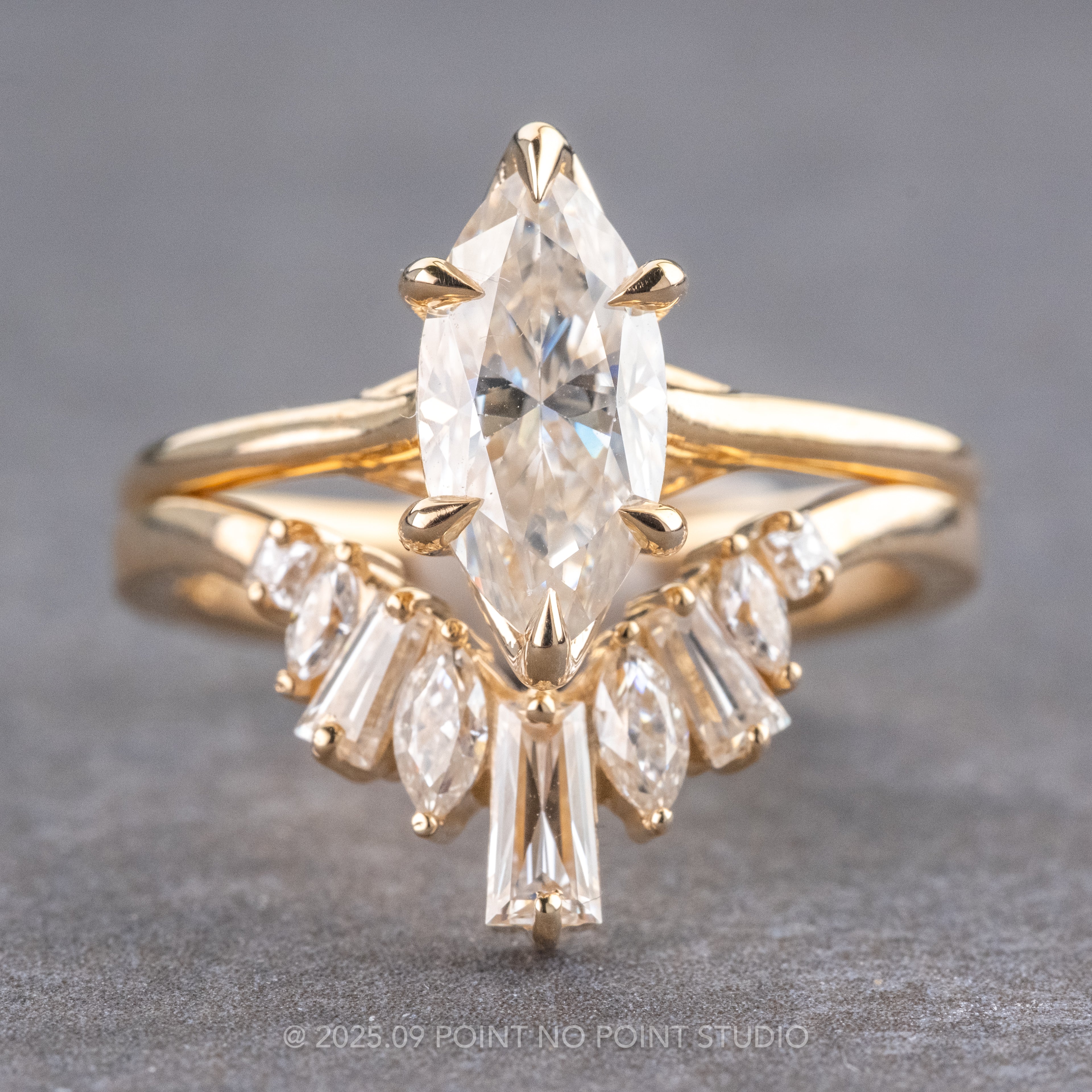 Marquise and Baguette Moissanite Wedding Band, Tassel Setting, 14K Yellow Gold