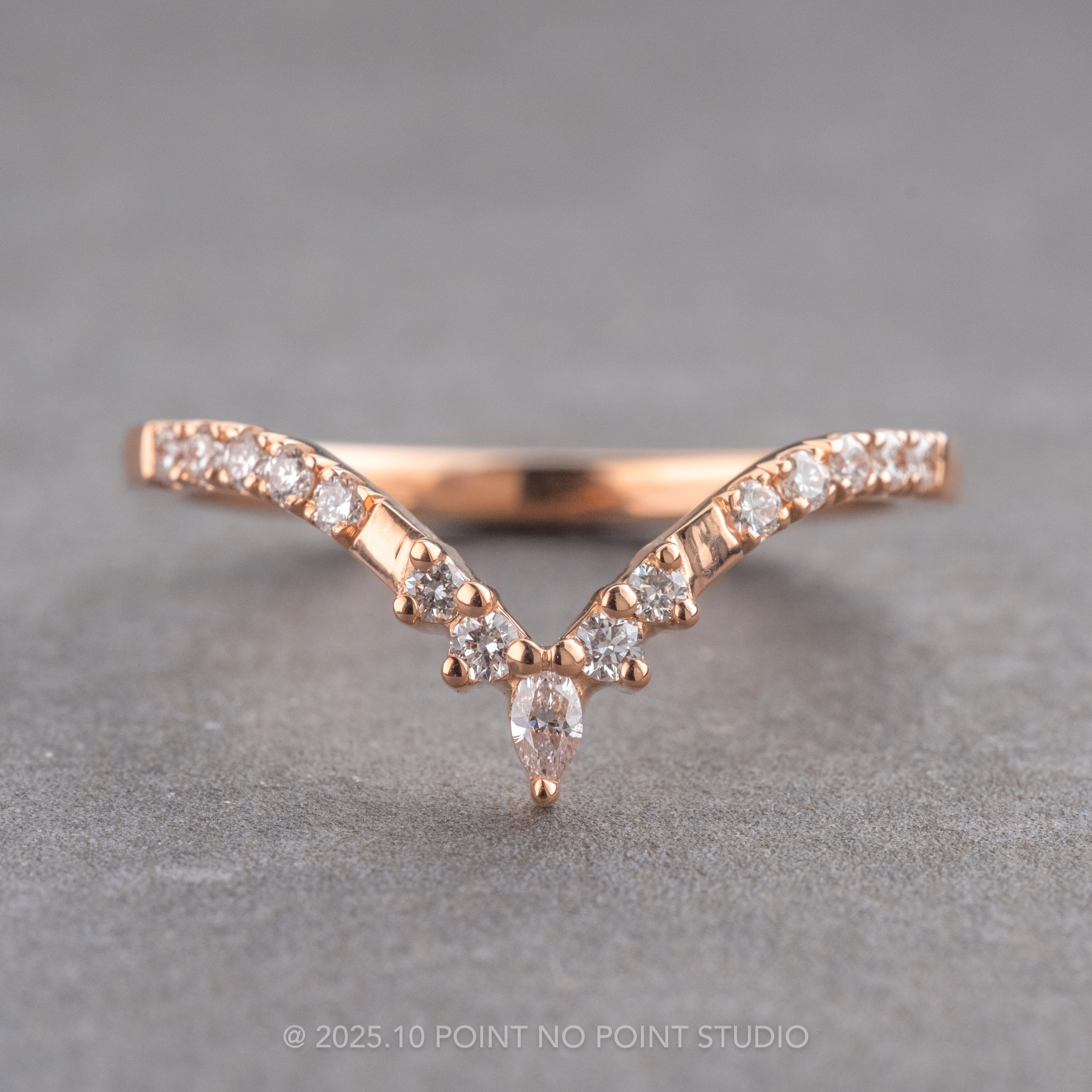 Marquise Diamond Wedding Band, Extra Diamond Flora Setting, 14K Rose Gold